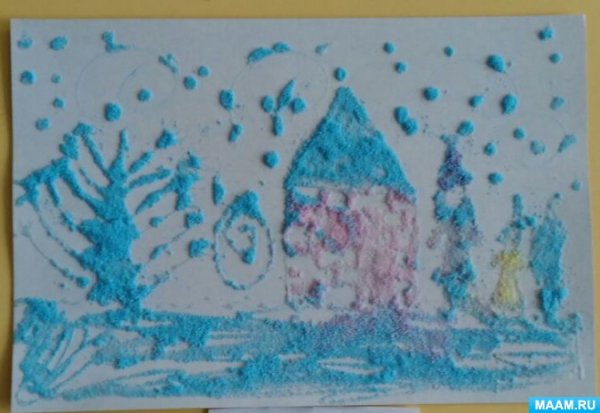 Рисунок солью зимний пейзаж (50 фото)