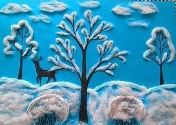 Зимняя аппликация с ватой