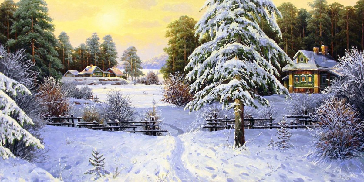 Художник Владимир Юрьевич Жданов картины зима деревня