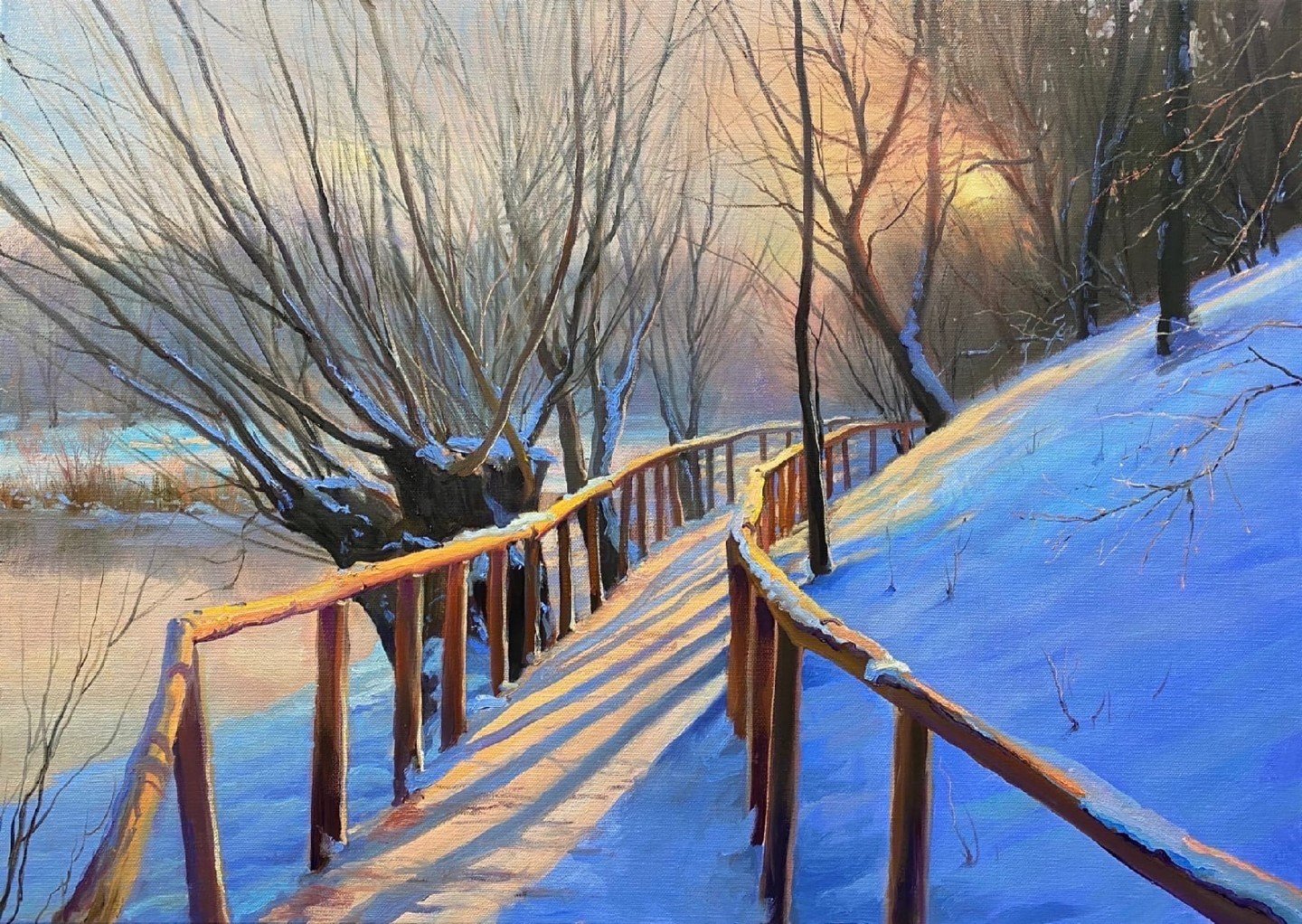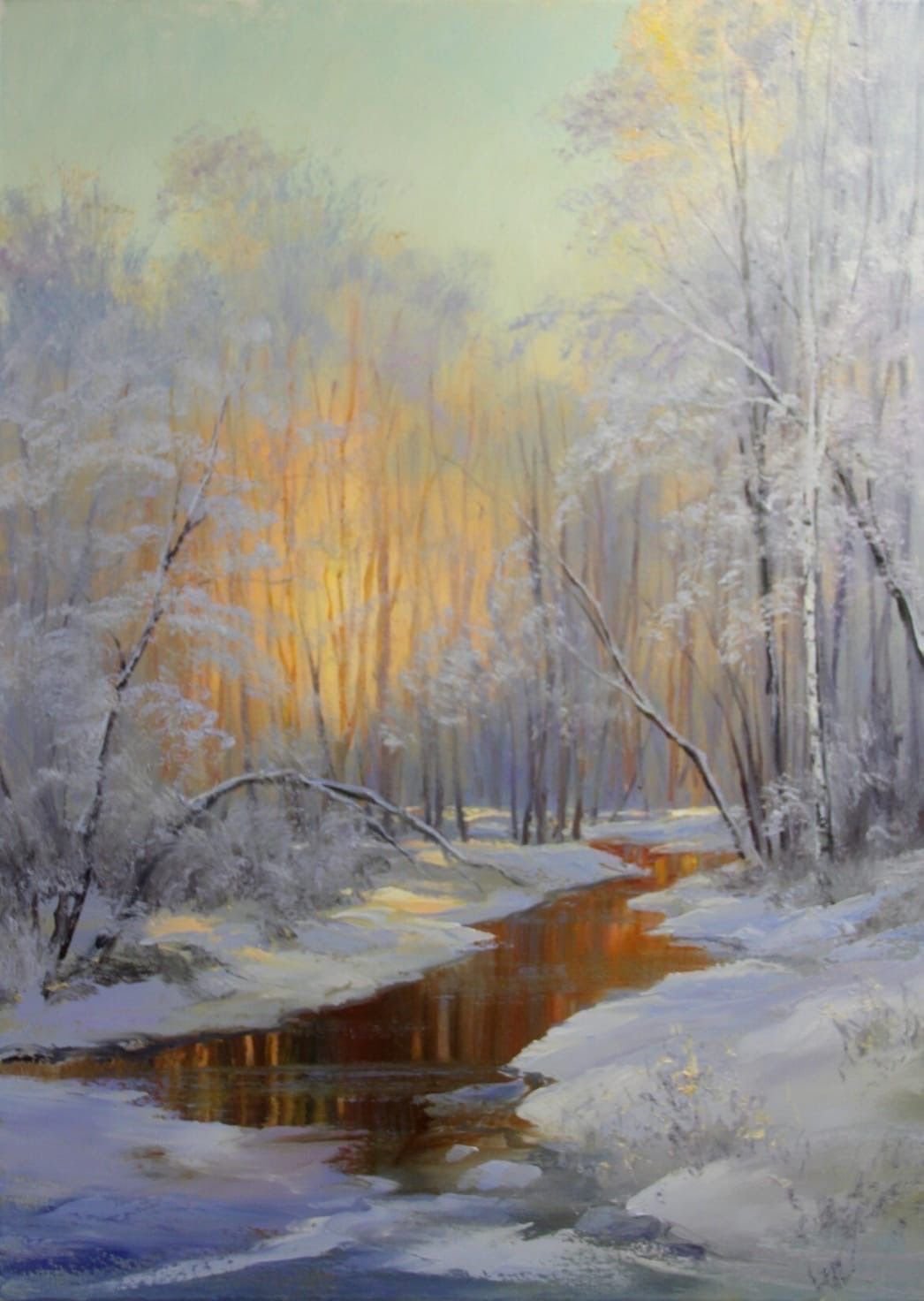 Зимний пейзаж Игоря Сахарова - это прекрасное сочетание мастерства и восхищения перед природой. Каждая его работа переносит нас в сказочный зимний мир, где деревья покрыты снегом, а небо окутано светлыми оттенками сумерек. Холодные тона и мягкие краски создают особую атмосферу тишины и спокойствия. В каждом кусочке холста можно увидеть замерзшие ручьи и озера, которые словно поверились зимнему снежному волшебству. Зимний пейзаж Игоря Сахарова заставляет нас почувствовать себя частью этого удивительного мира и насладиться его красотой.