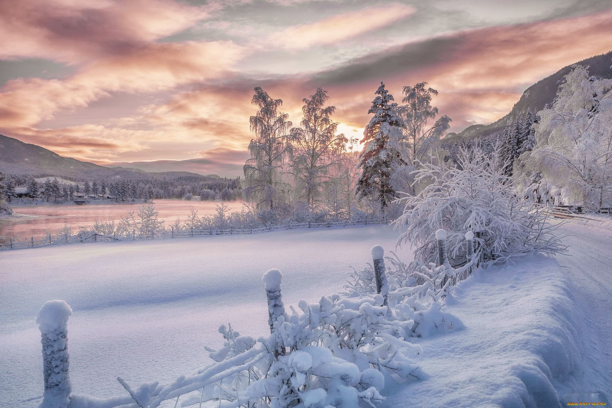 Волшебный зимний пейзаж на этой картинке привлекает внимание своей невероятной красотой и атмосферой. Снежные вершины гор, увитые сияющим белым покровом, создают ощущение спокойствия и умиротворения. Величественные деревья, покрытые ледяными ветками, словно оживают под яркими лучами солнца. Хрустально чистое небо украшено мерцающими звездами, которые таинственно отражаются в замерзшем озере. Эта картина передает всю красоту и величие зимы, переносит вас в мир мечты, где можно насладиться каждой мельчайшей деталью этого удивительного зимнего пейзажа.