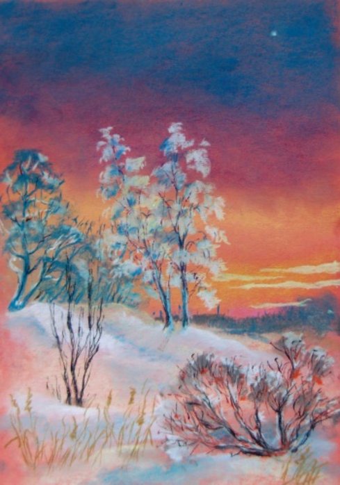 Зимний пейзаж рисование сухой пастелью