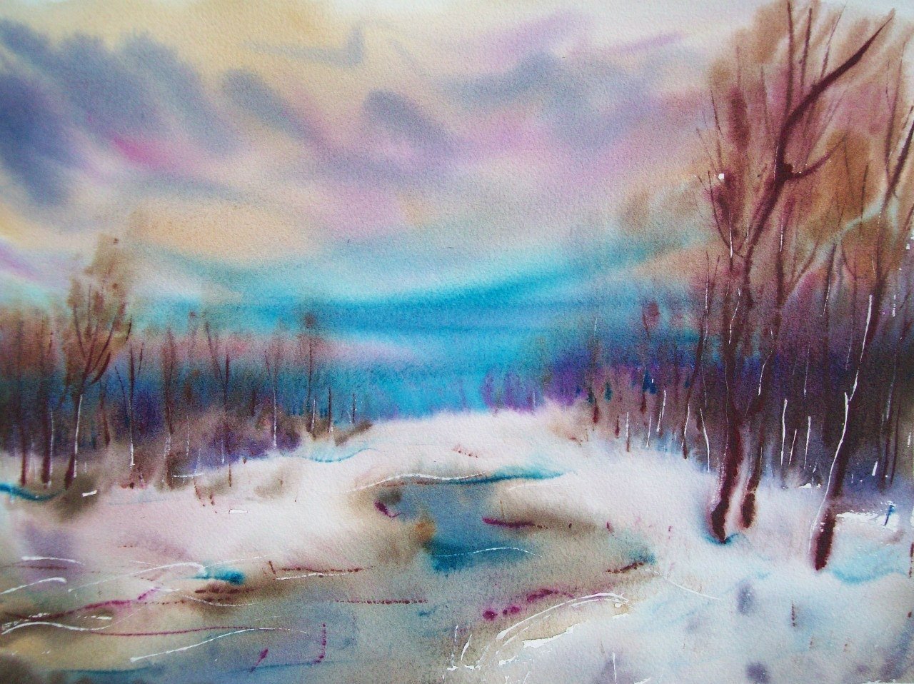 Шерстяная акварель зима