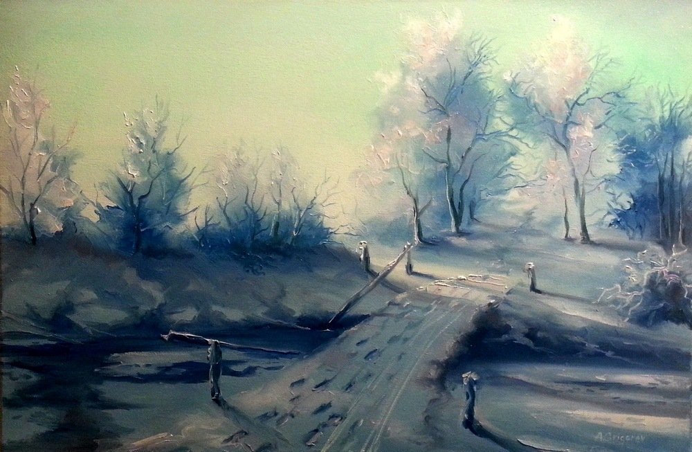 Художник Анатолий Перегудов-Васильев деревня зимой