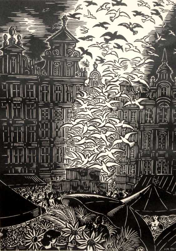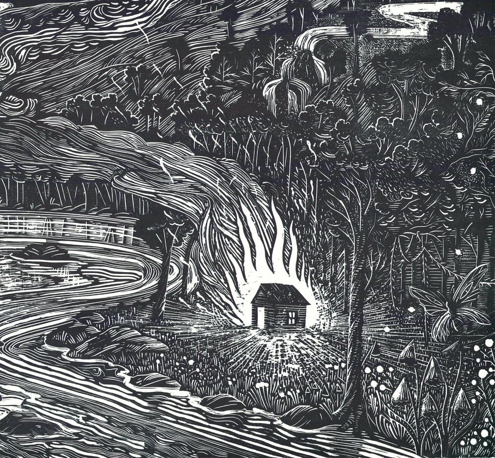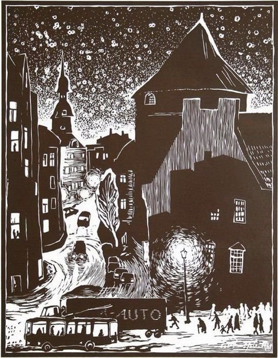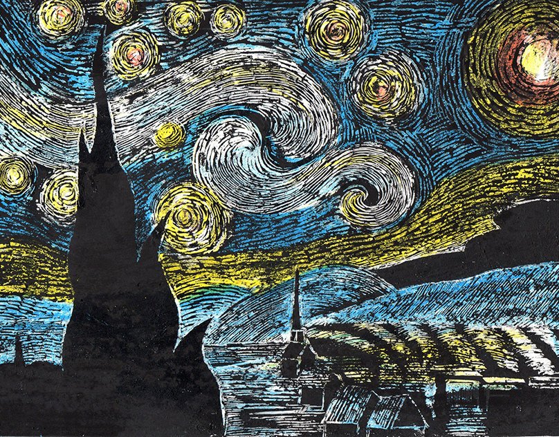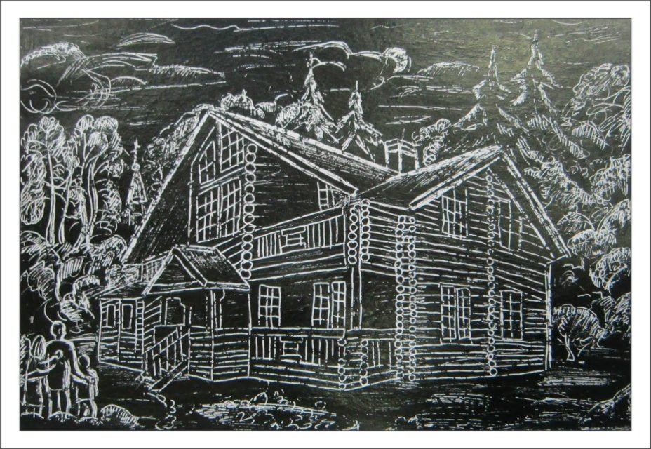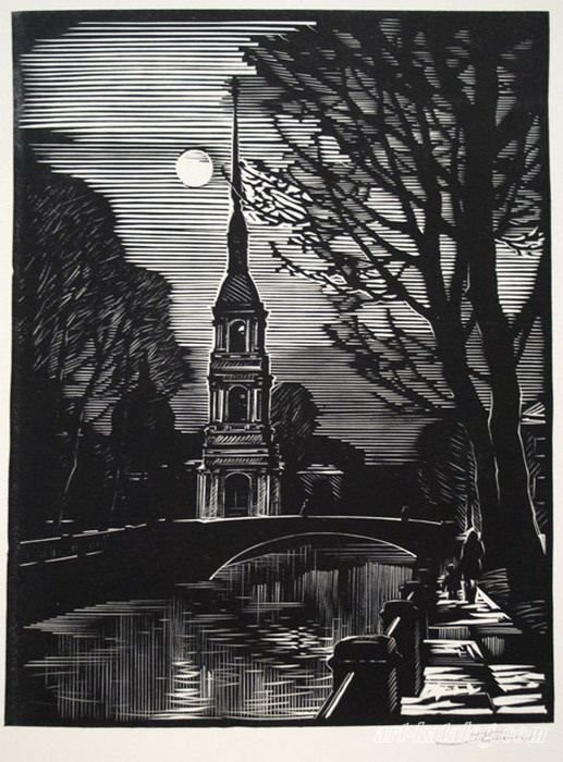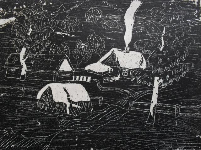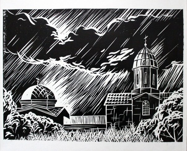 Церковь в Феодосии" линогравюра. Пейзаж в технике линогравюра.