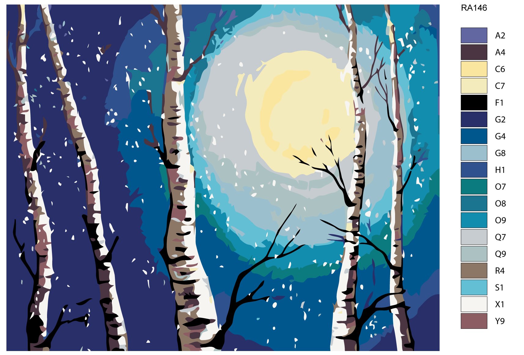 Зимний ночной лес гуашью