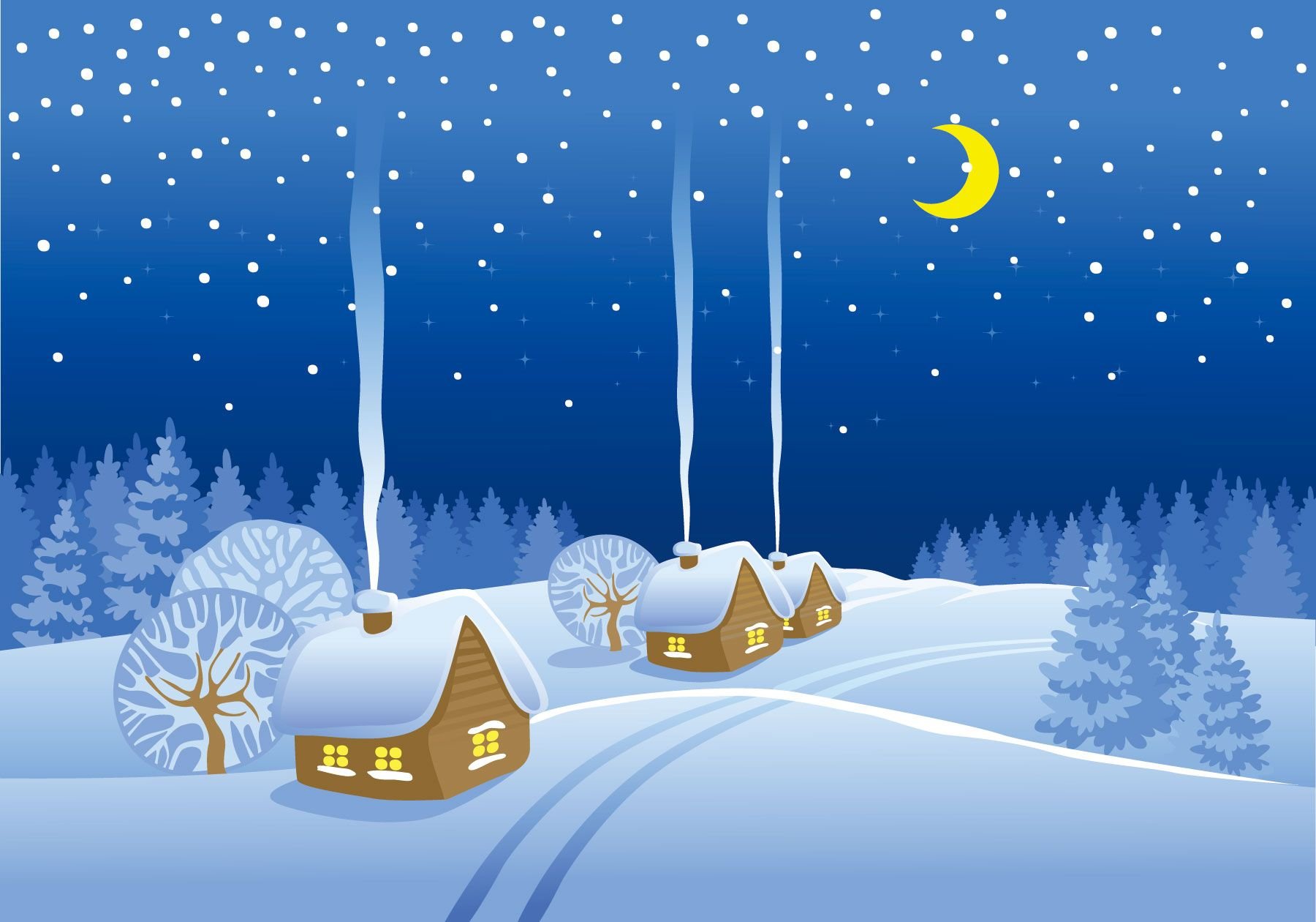 Зимний ночной пейзаж для детей