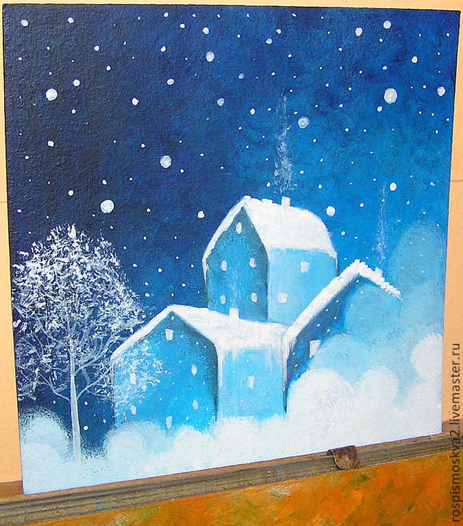 Ночной зимний пейзаж рисунок гуашью