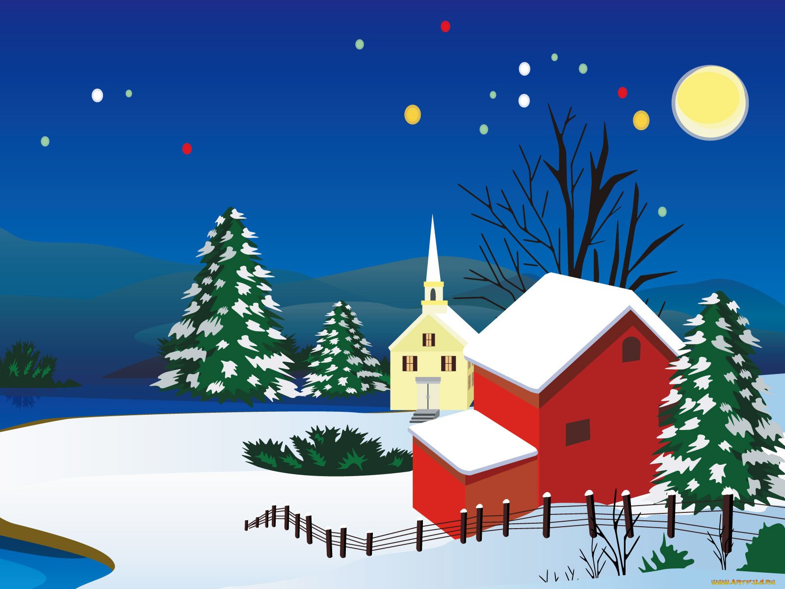 Новогодний пейзаж с луной
