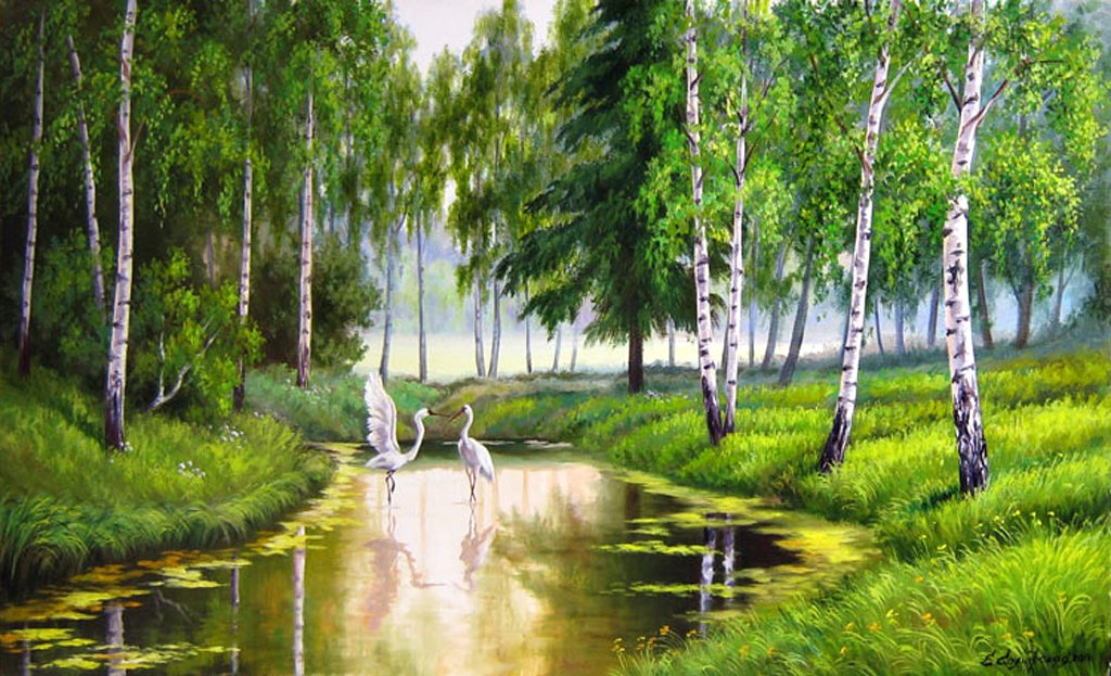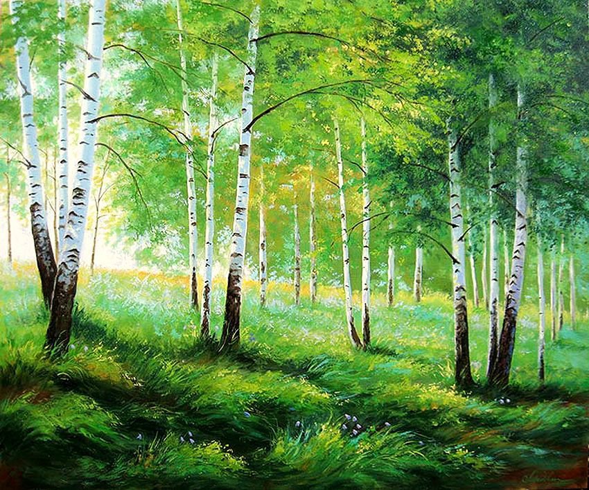 Живопись природа Березовая роща