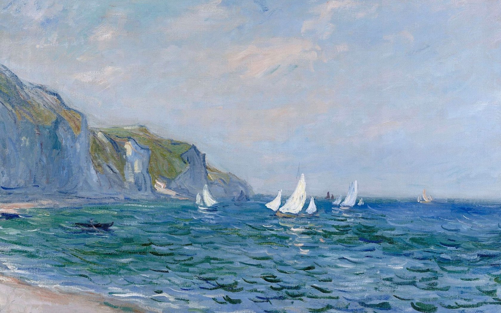 Скалы и парусные лодки в Пурвиле. Моне, Клод