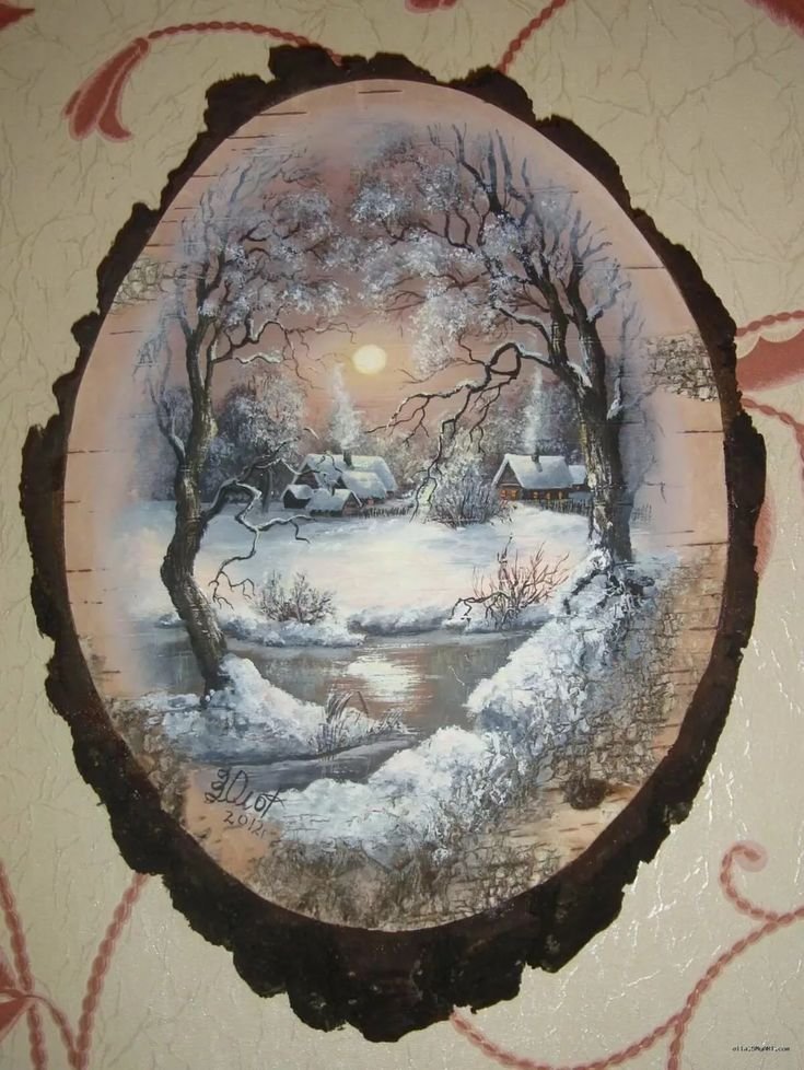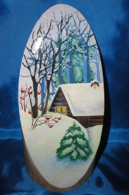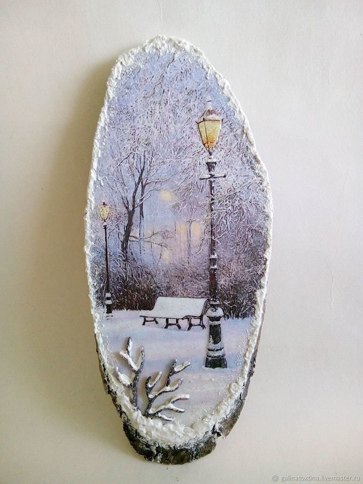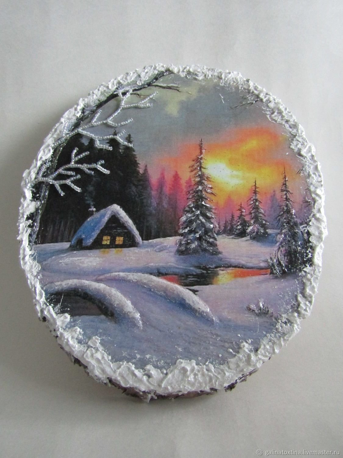 Панно на спиле 'зима', 27-31 см, каменная крошка, вертикальное