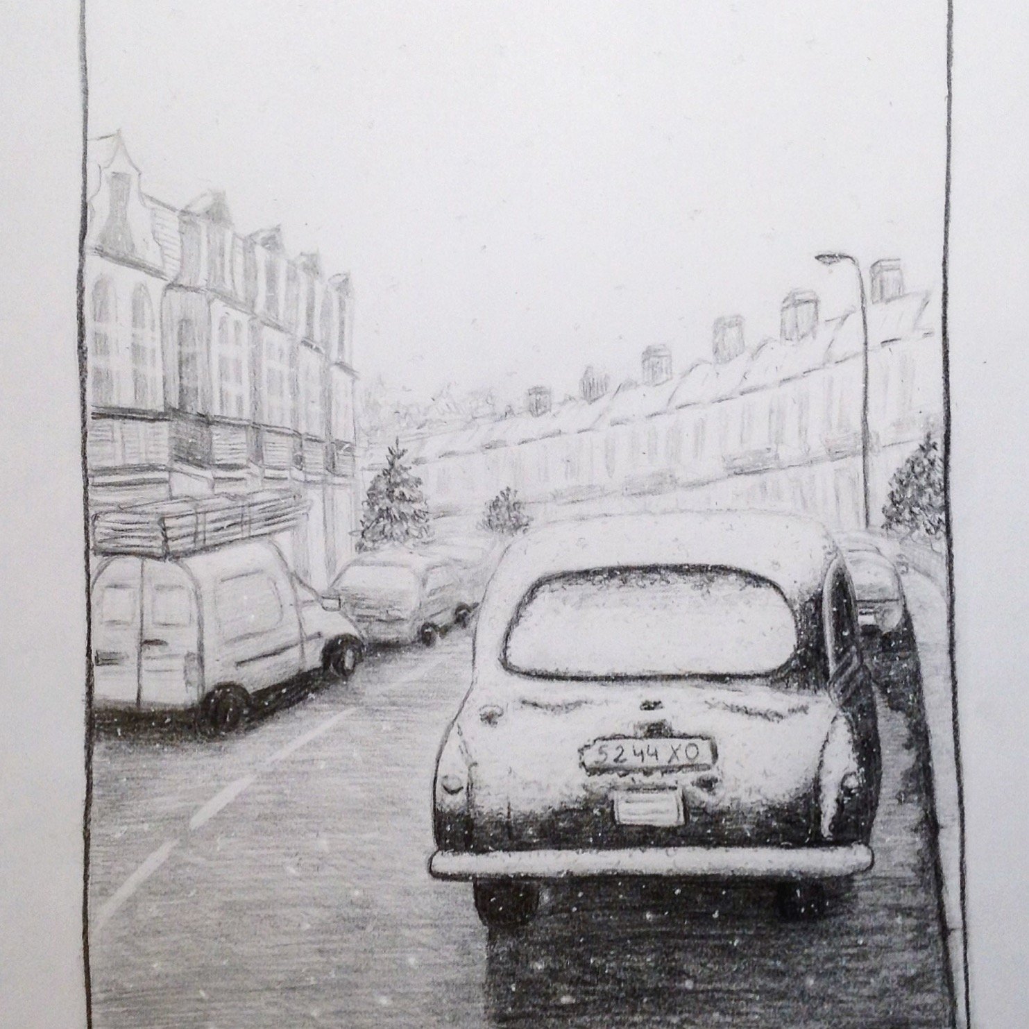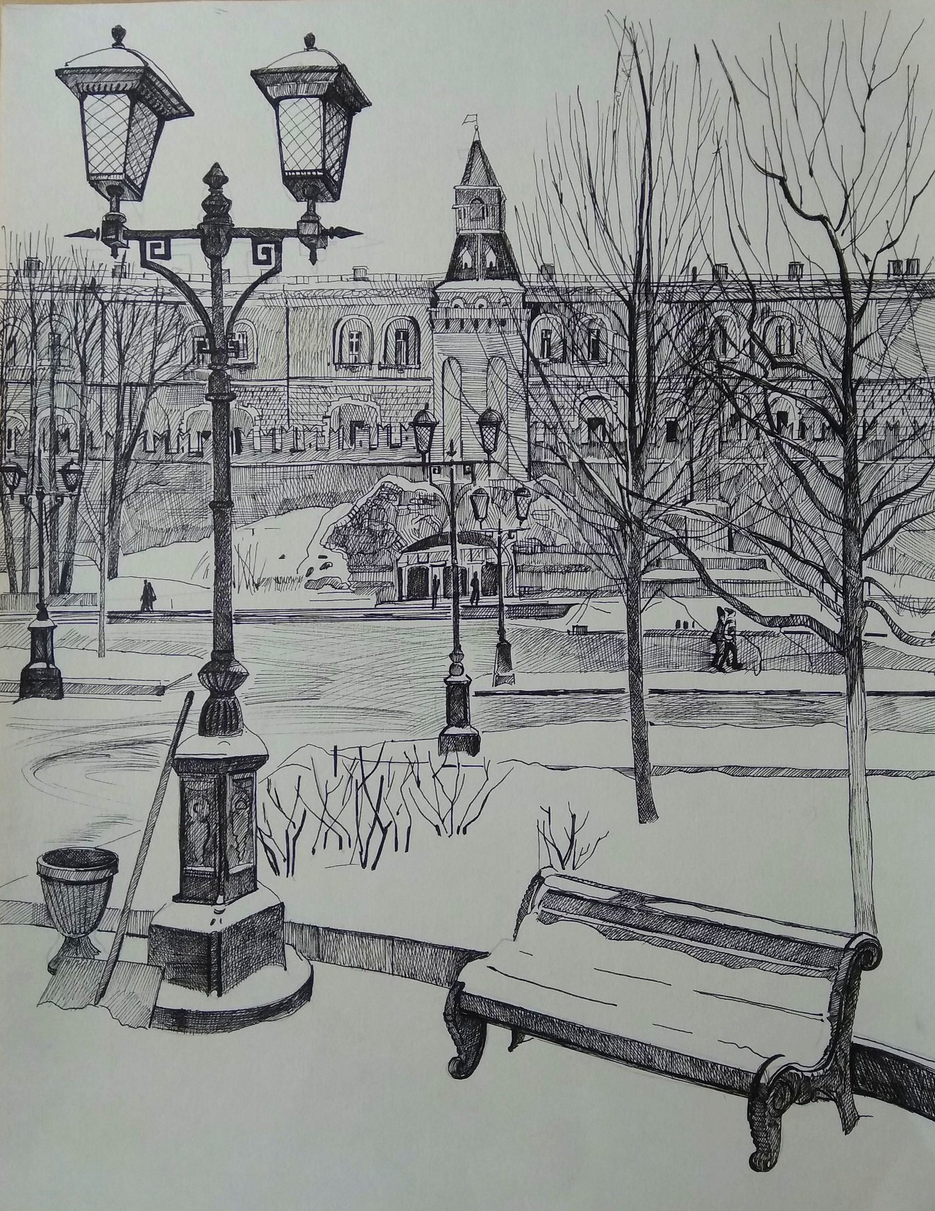 Зимняя улица карандашом