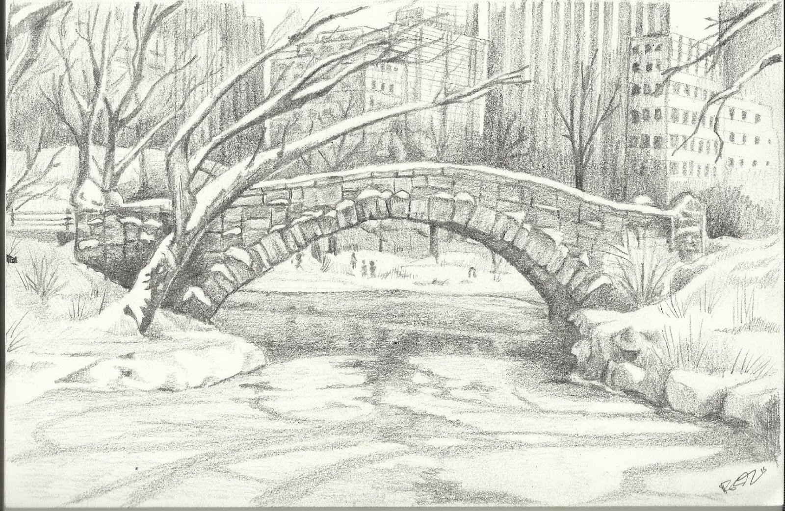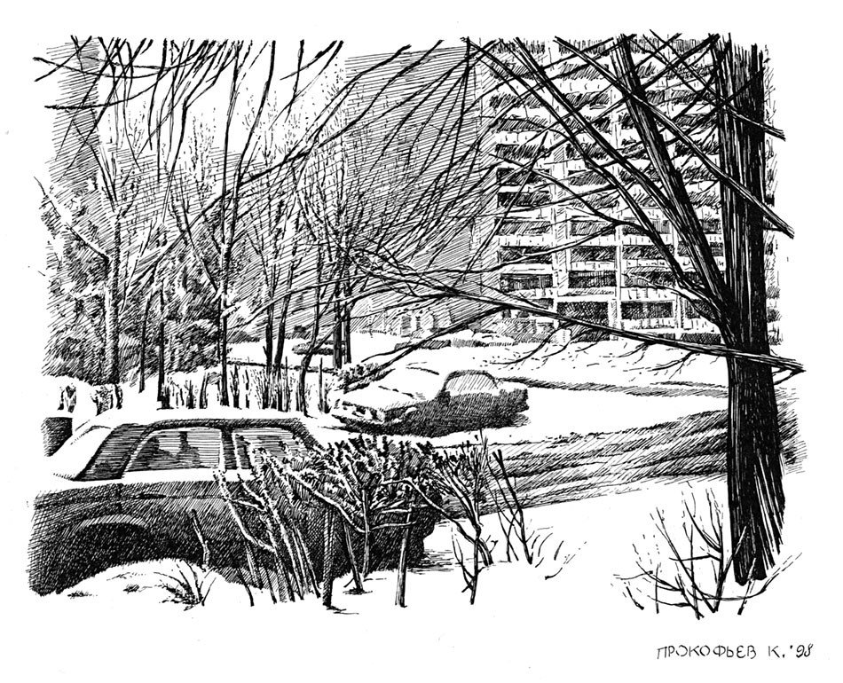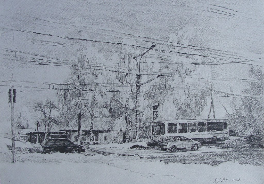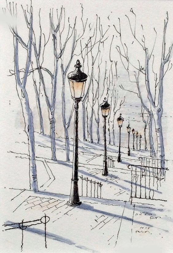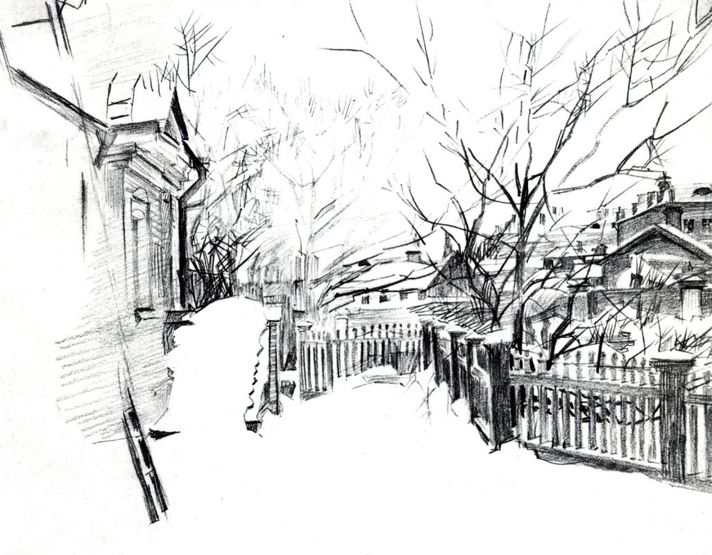 Зимние зарисовки карандашом