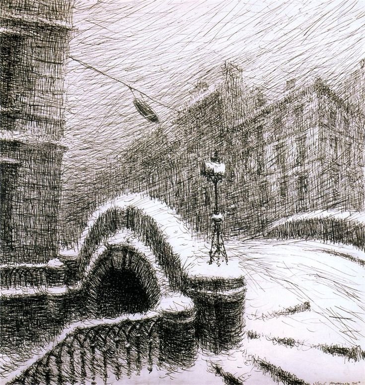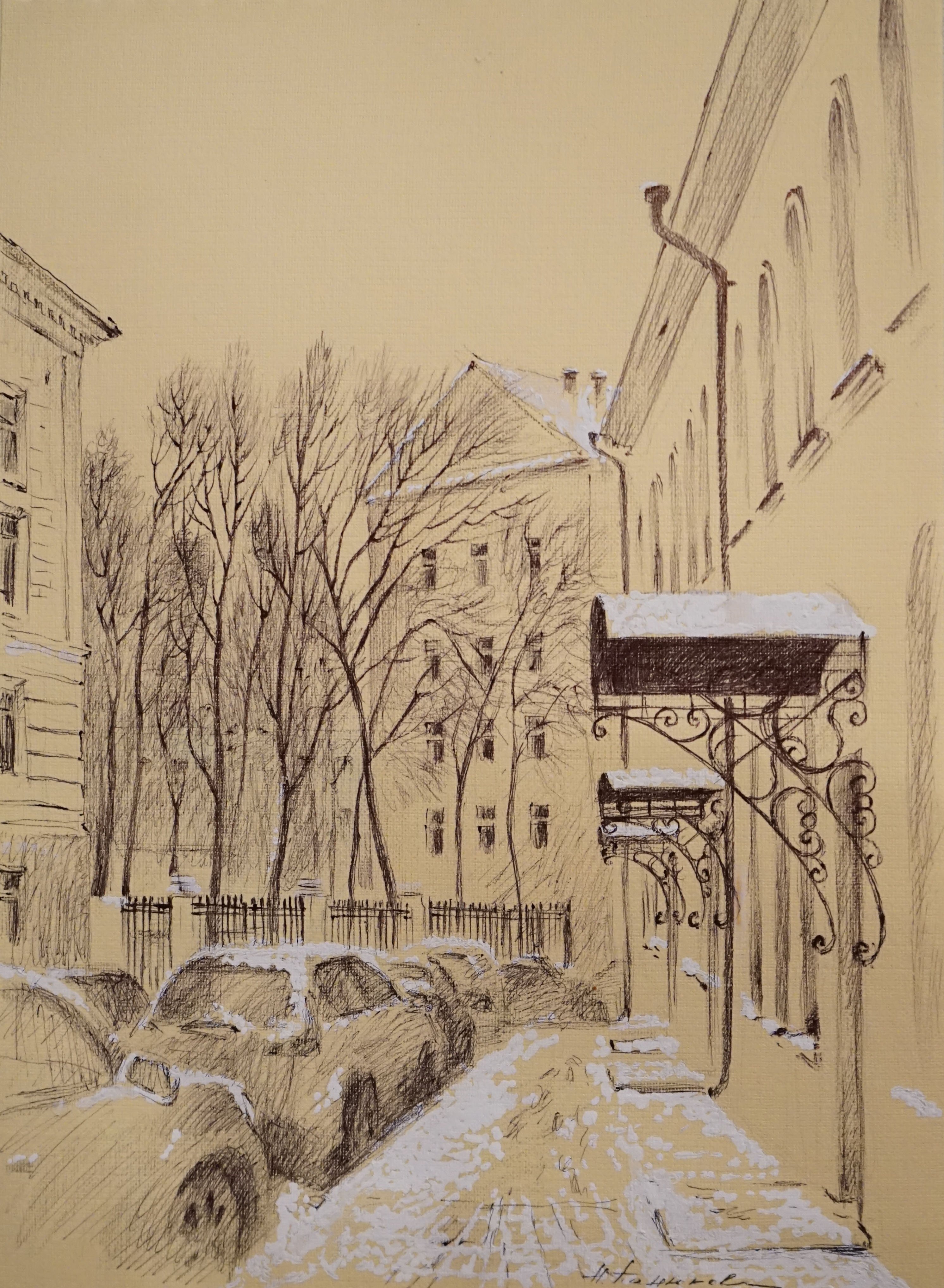 Городской зимний пейзаж Графика
