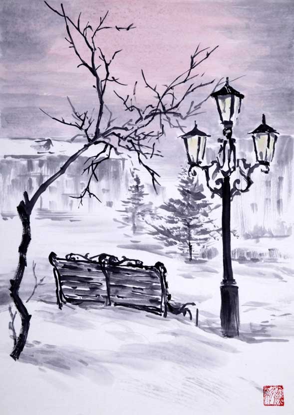 Зима в графике тушью