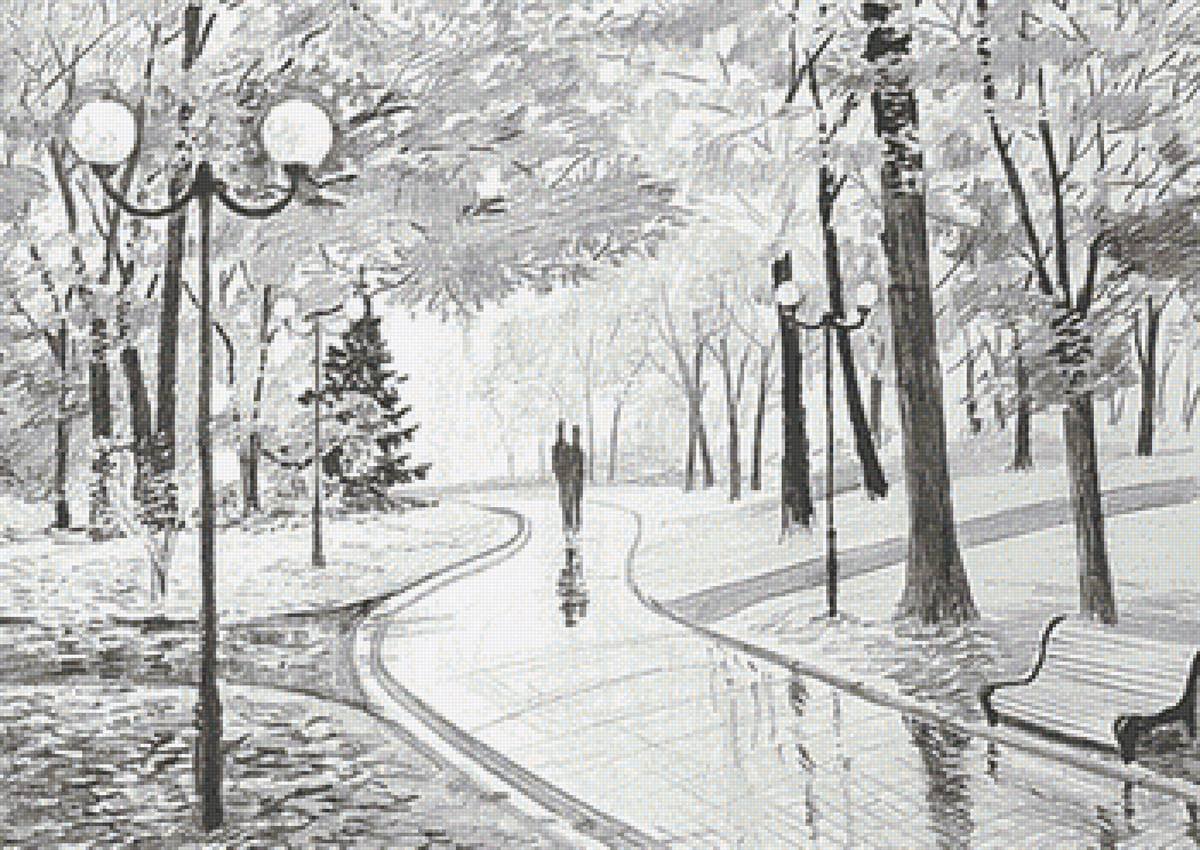 Пейзаж парка карандашом