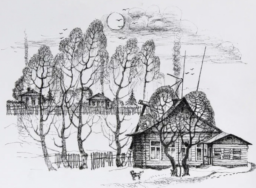 Зимний пейзаж в графике