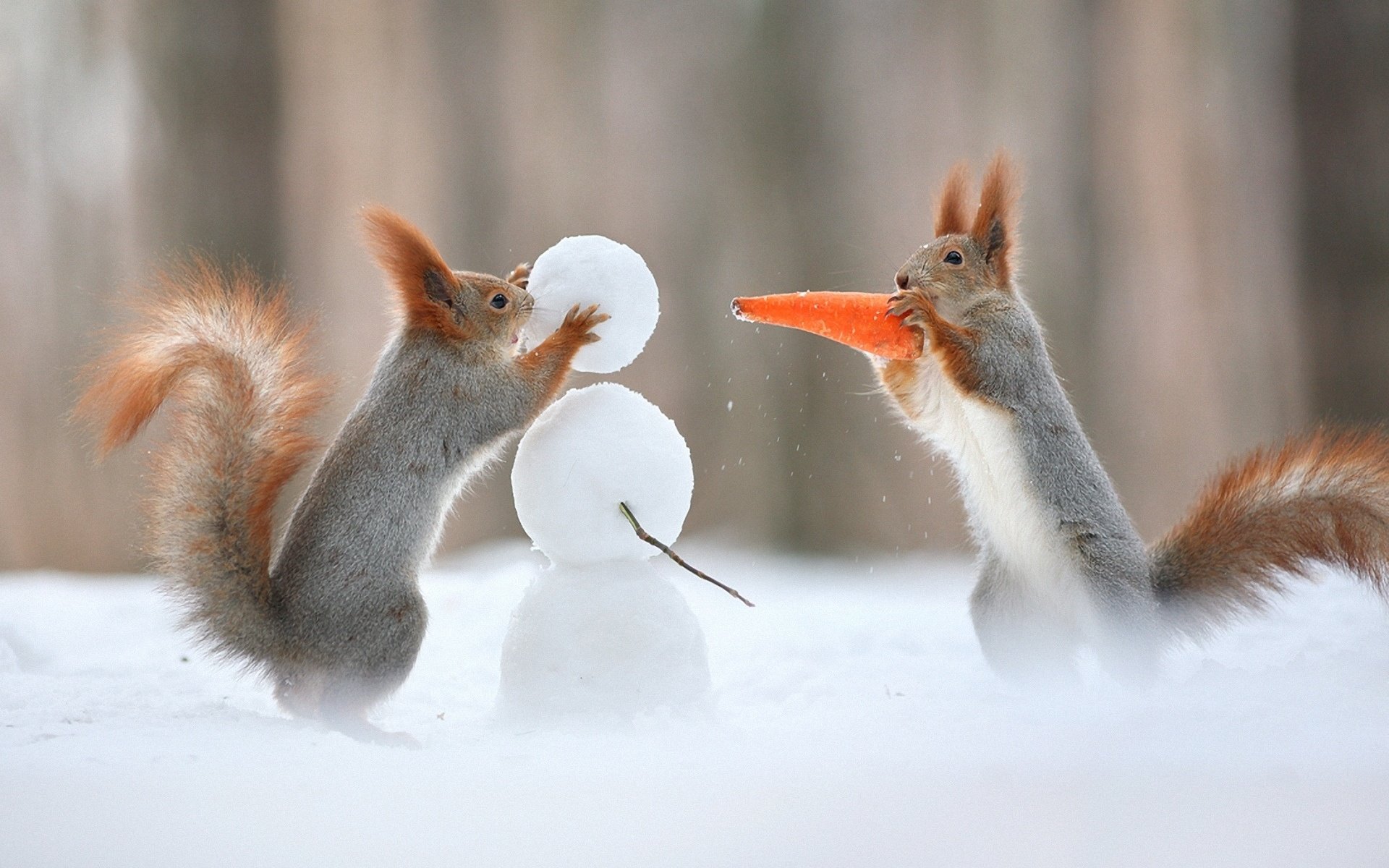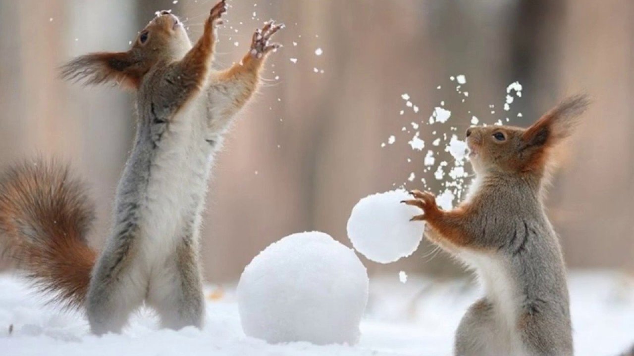 Забавные животные зимой