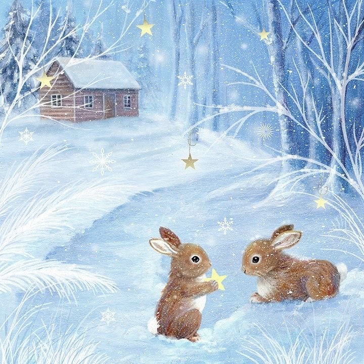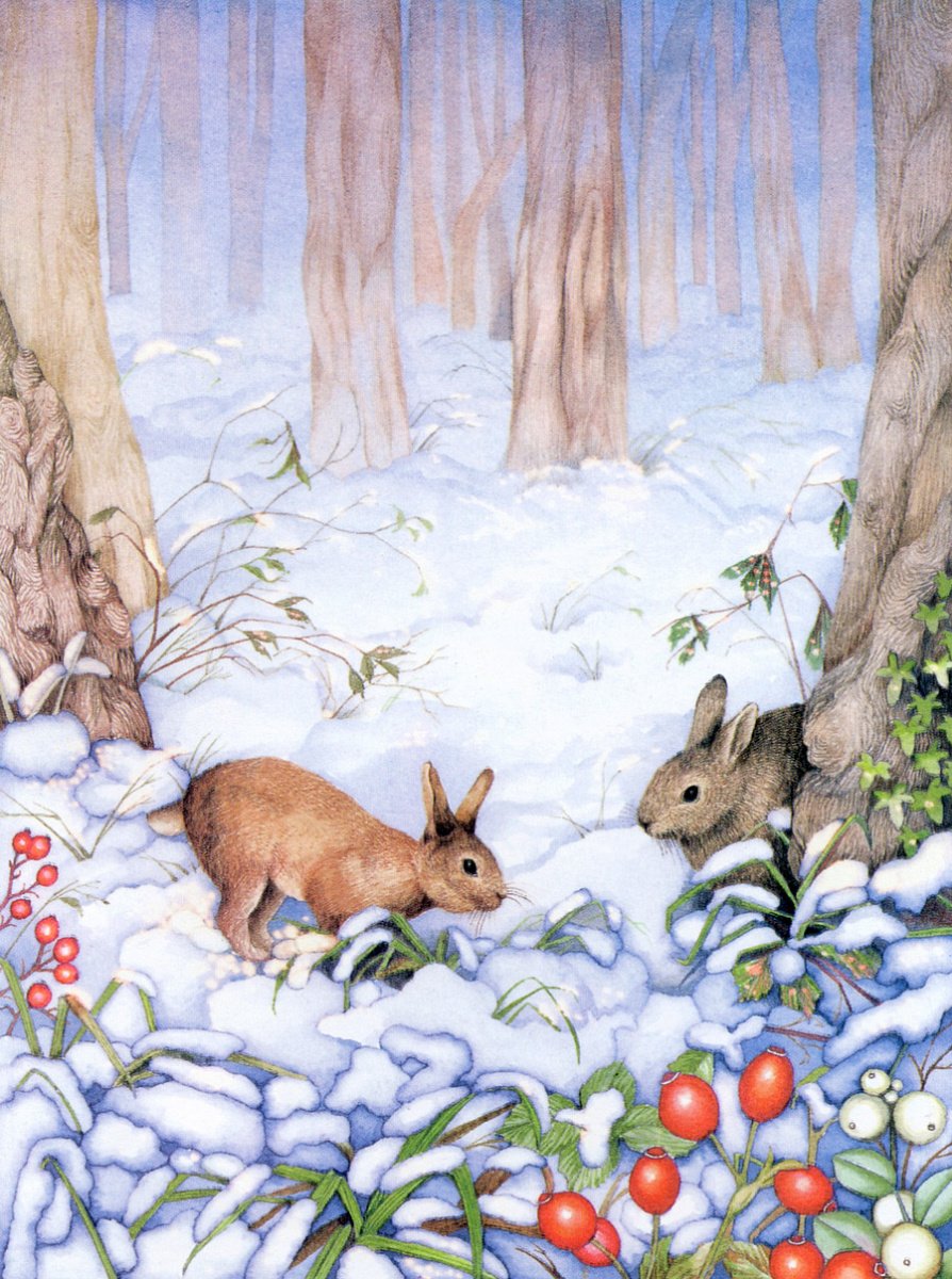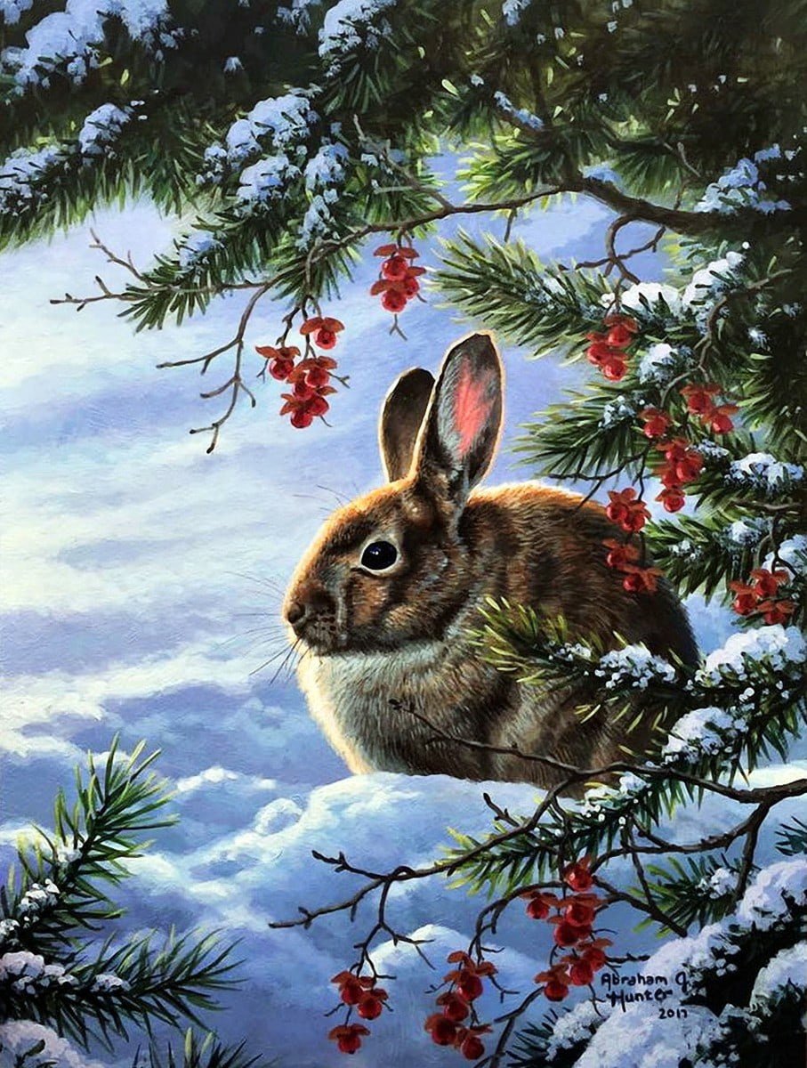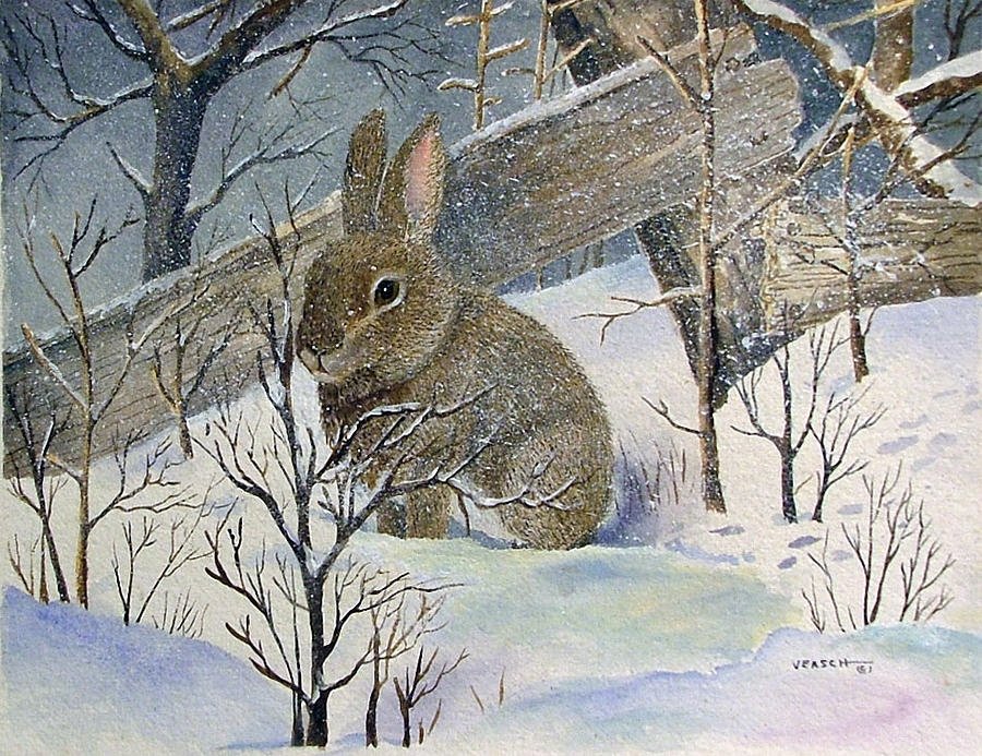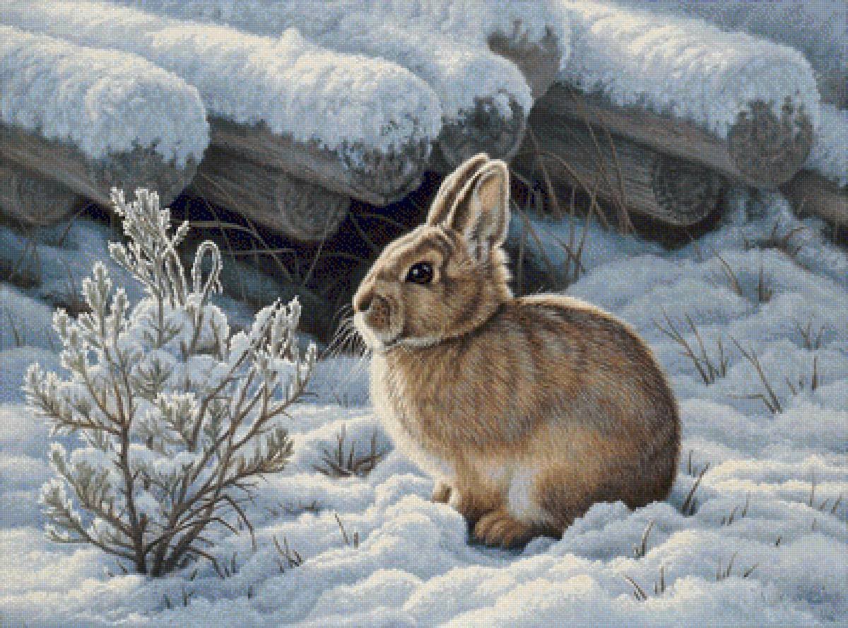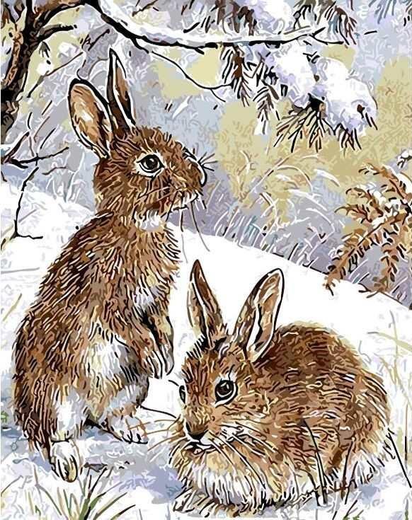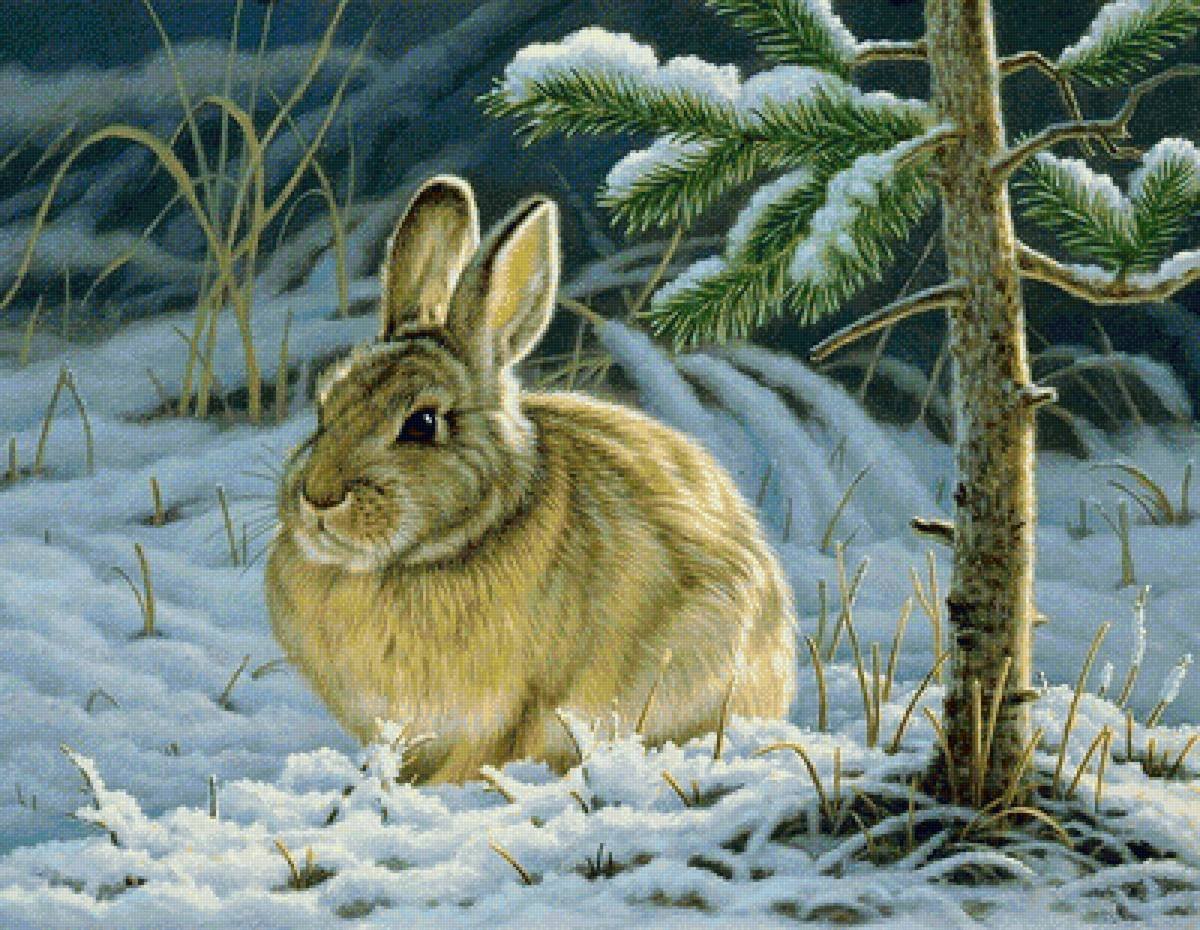 Зайчик зимой живопись
