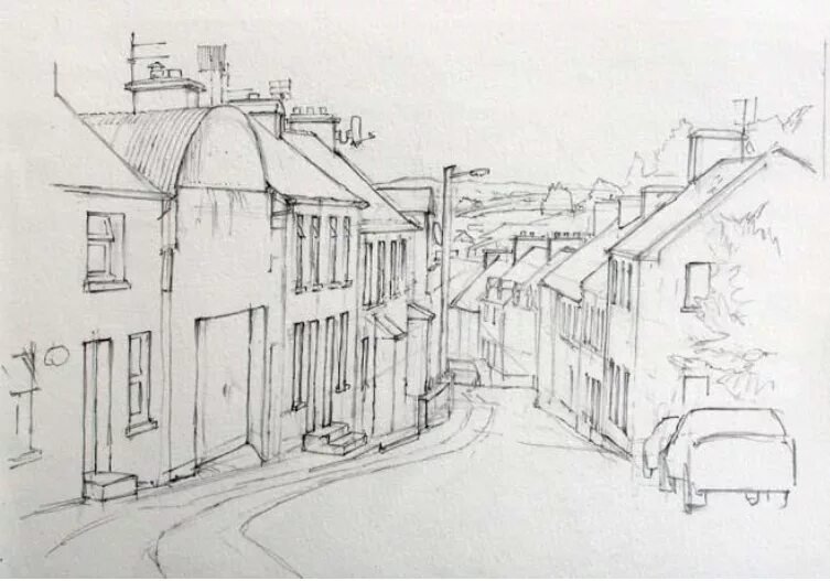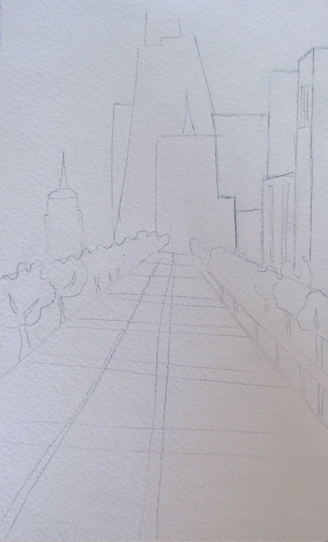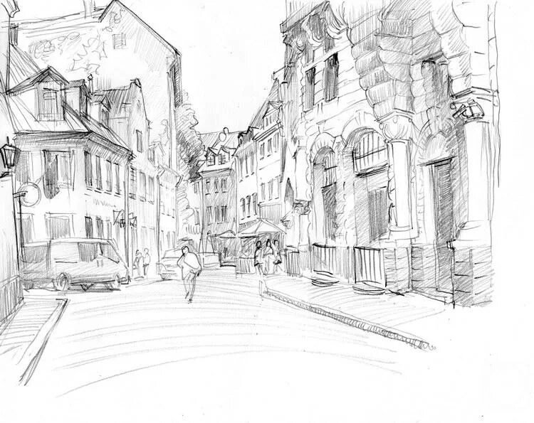 Зарисовка города линейная перспектива