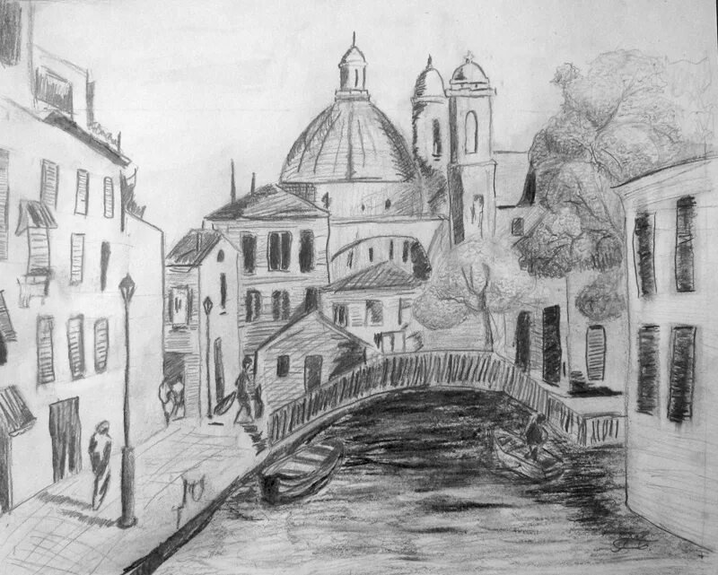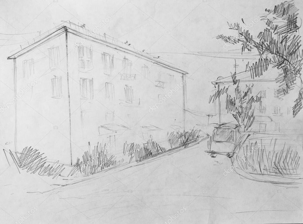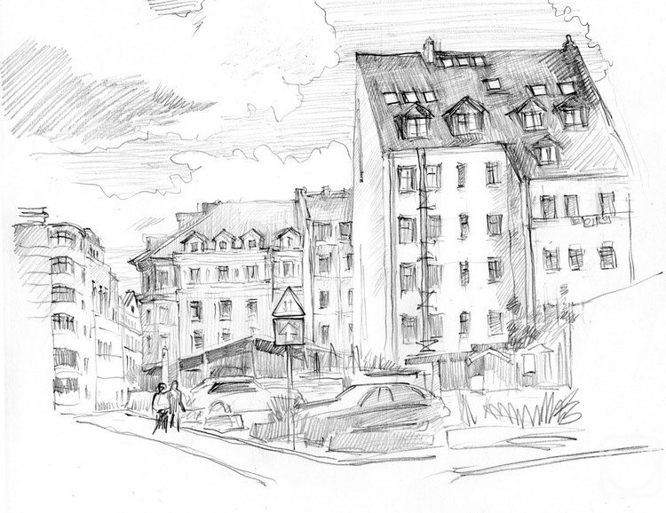 Архитектурный пейзаж карандашом для начинающих