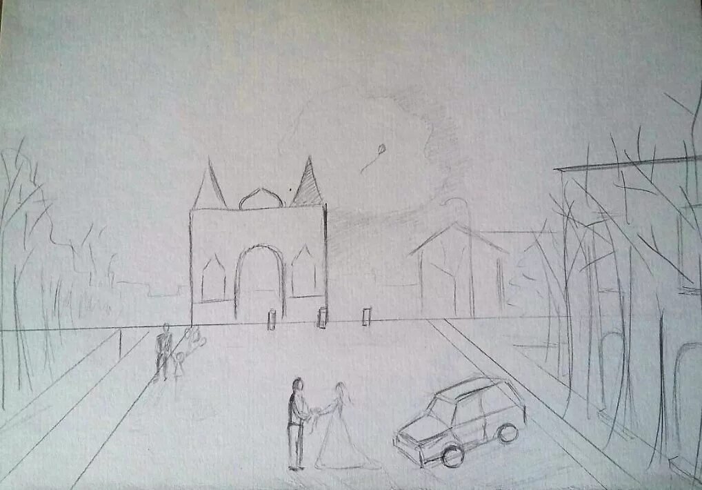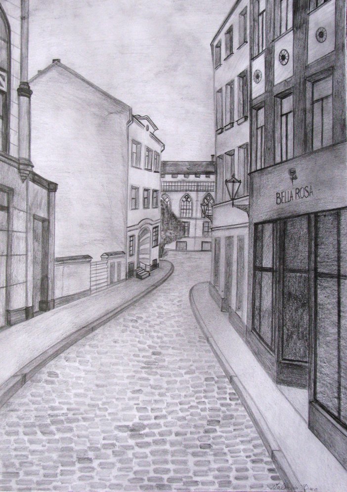Линейная перспектива улицы карандашом