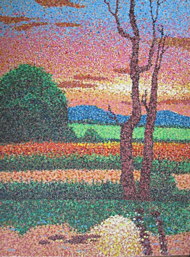 Техника пуантилизм пейзаж