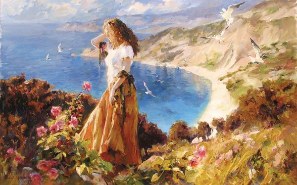 Девушка и море живопись