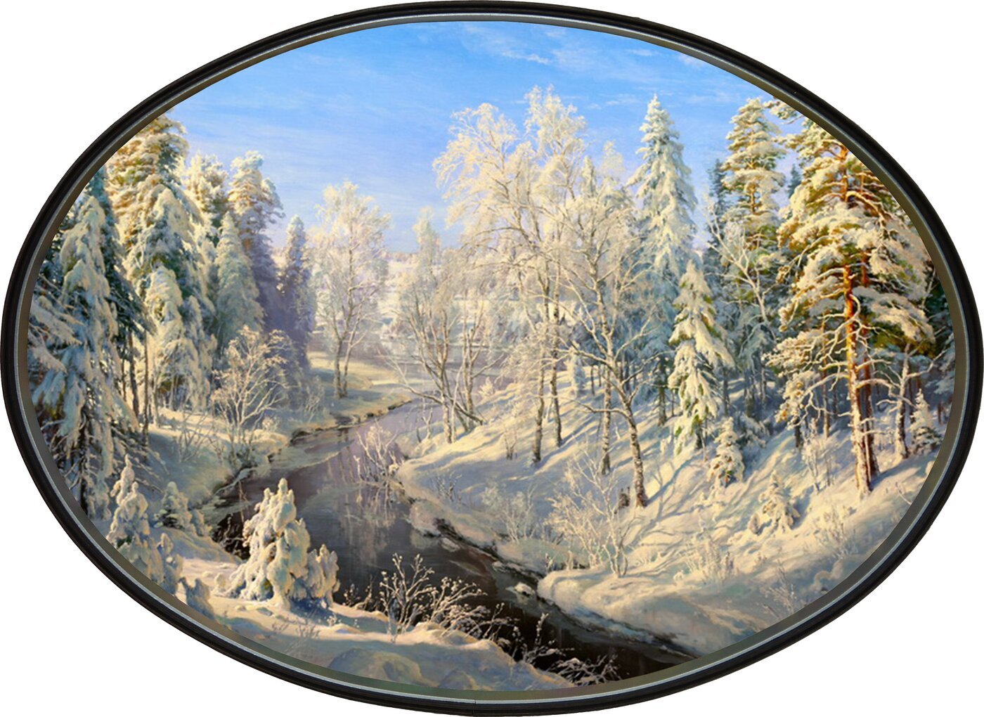 Зимний пейзаж в овальной раме
