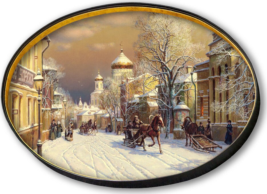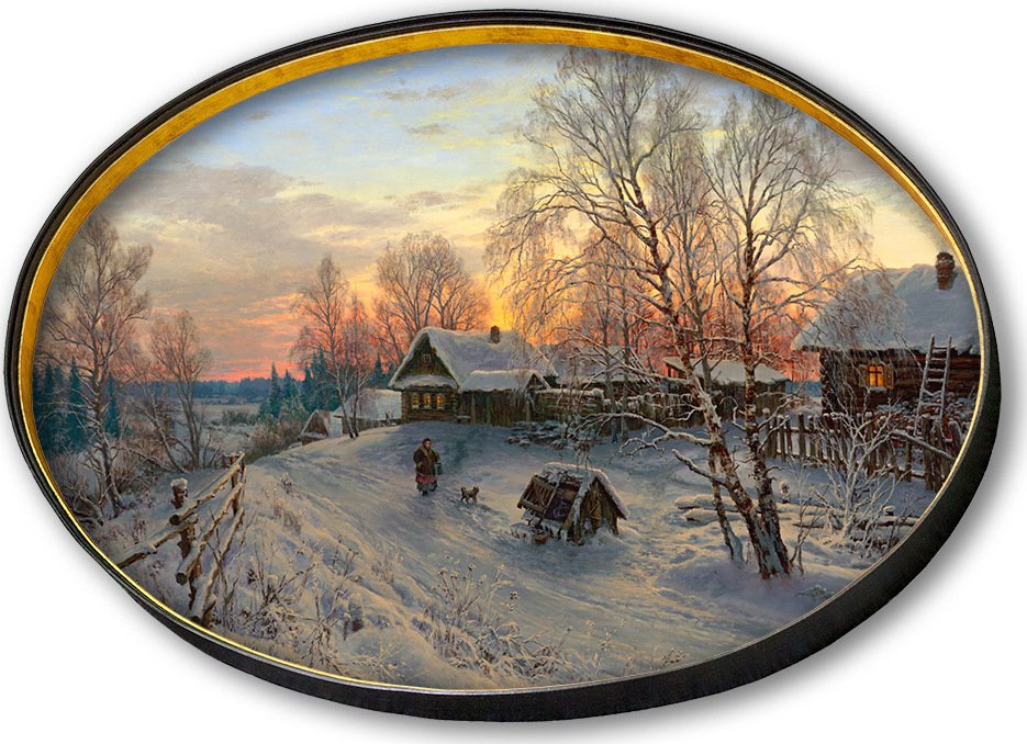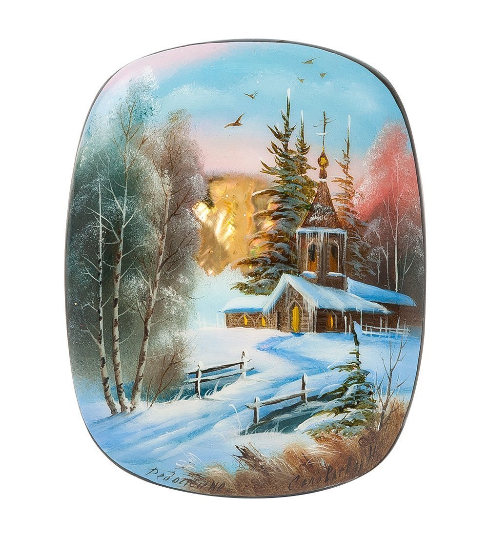 Федоскинская живопись зимний пейзаж
