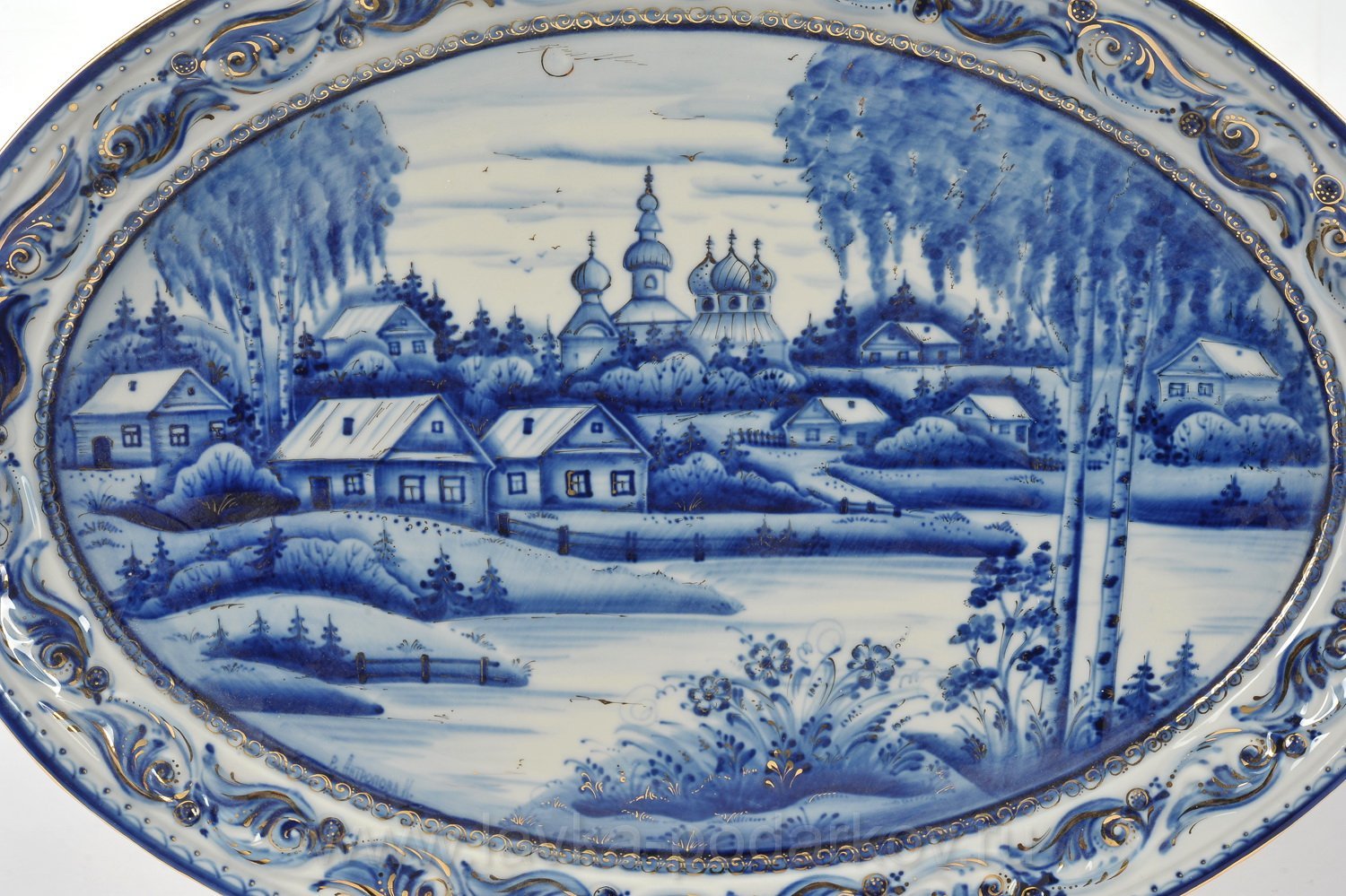 Зимний пейзаж гжельской росписью