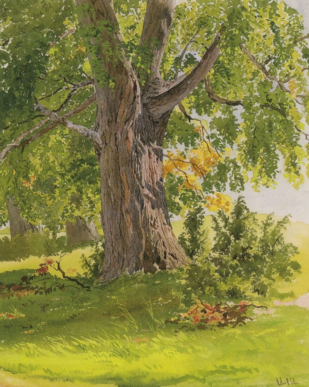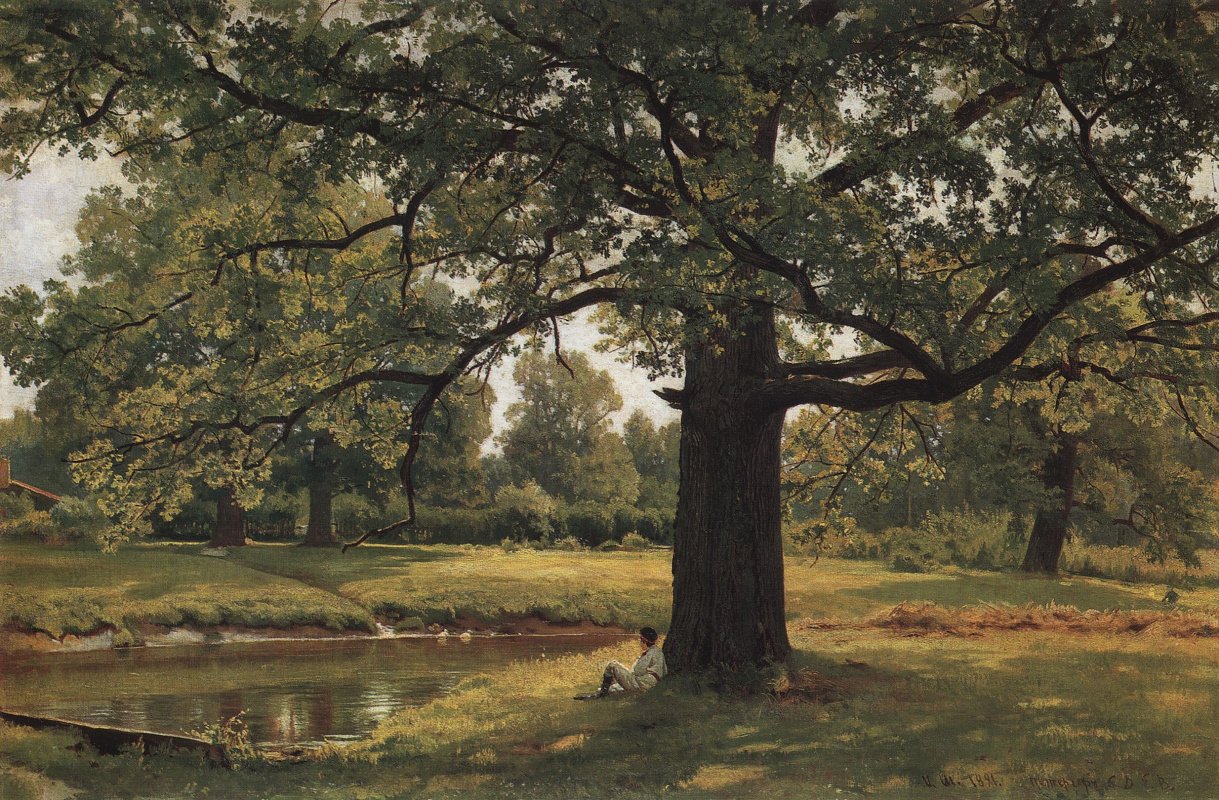 «Пейзаж с дубами и пастушком» (1860) Саврасов