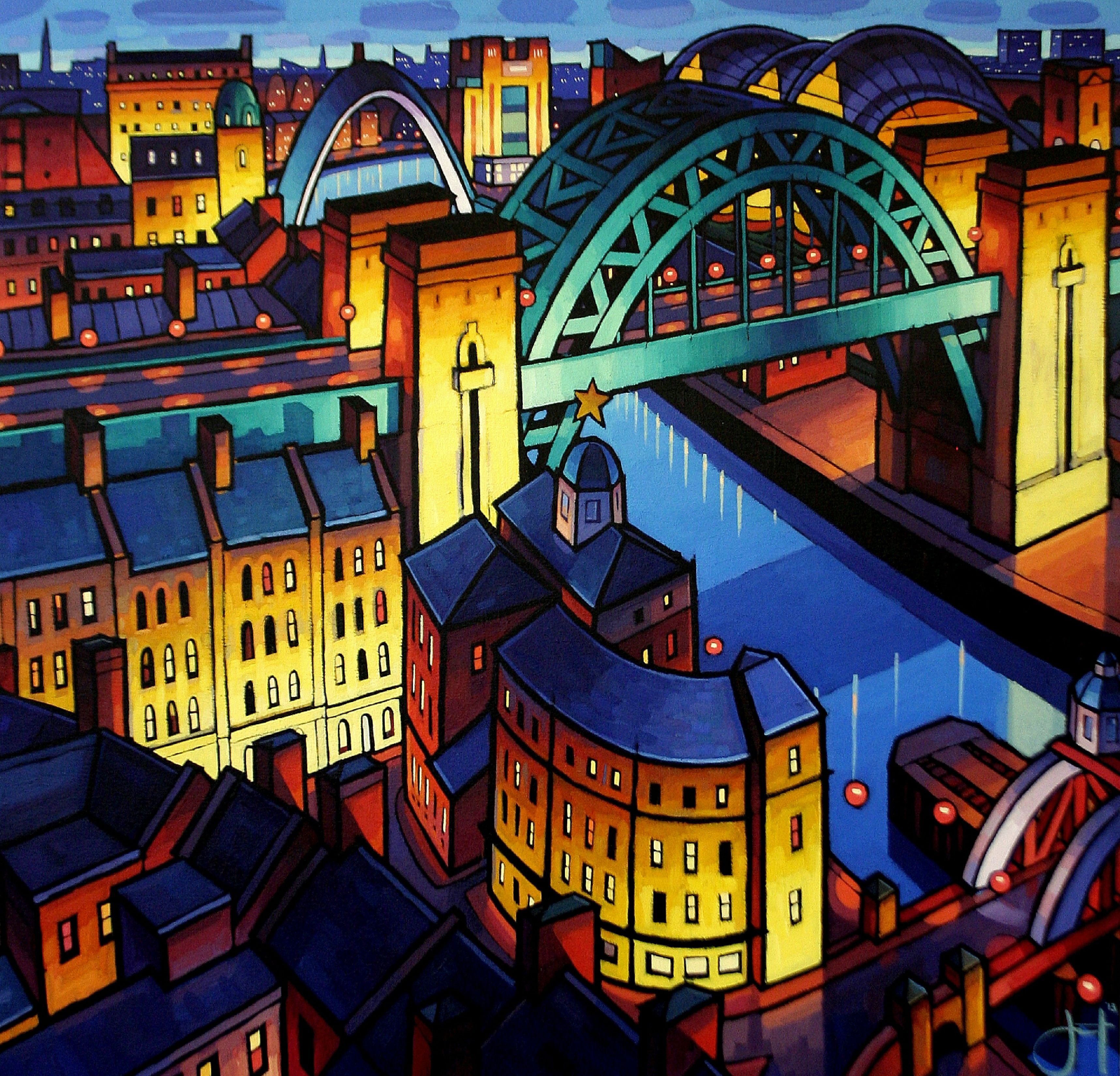 Стилизованный городской пейзаж живопись