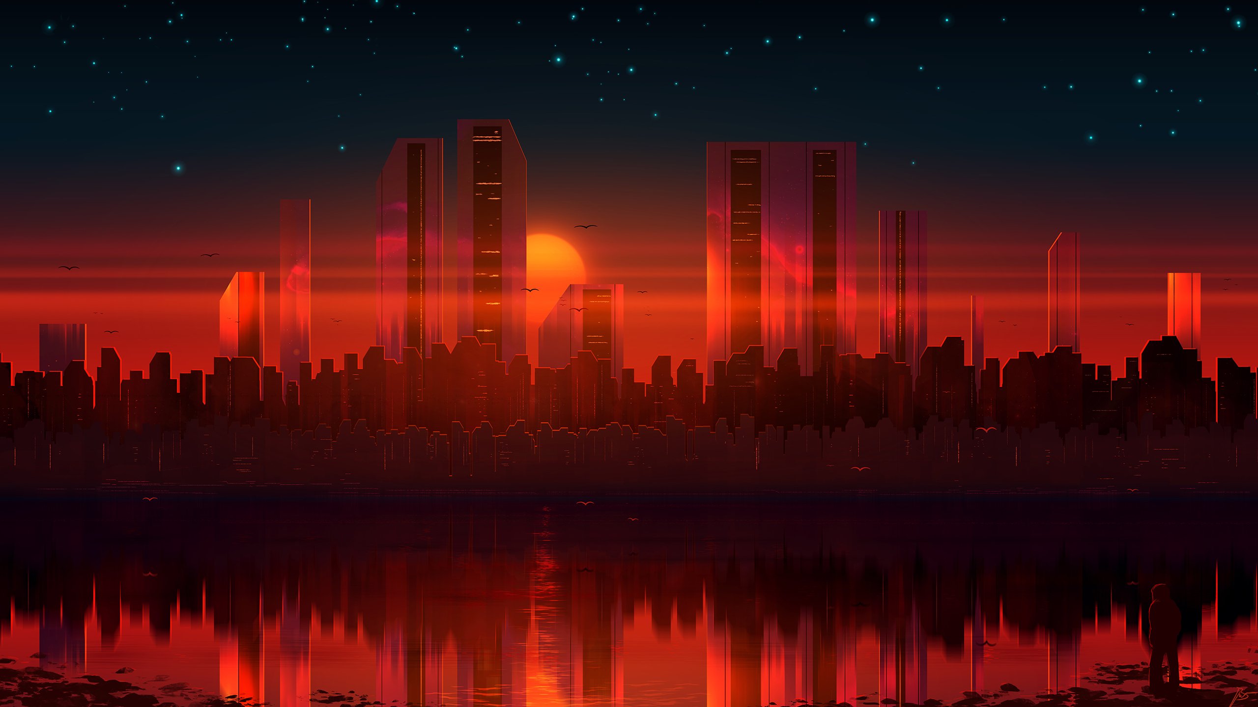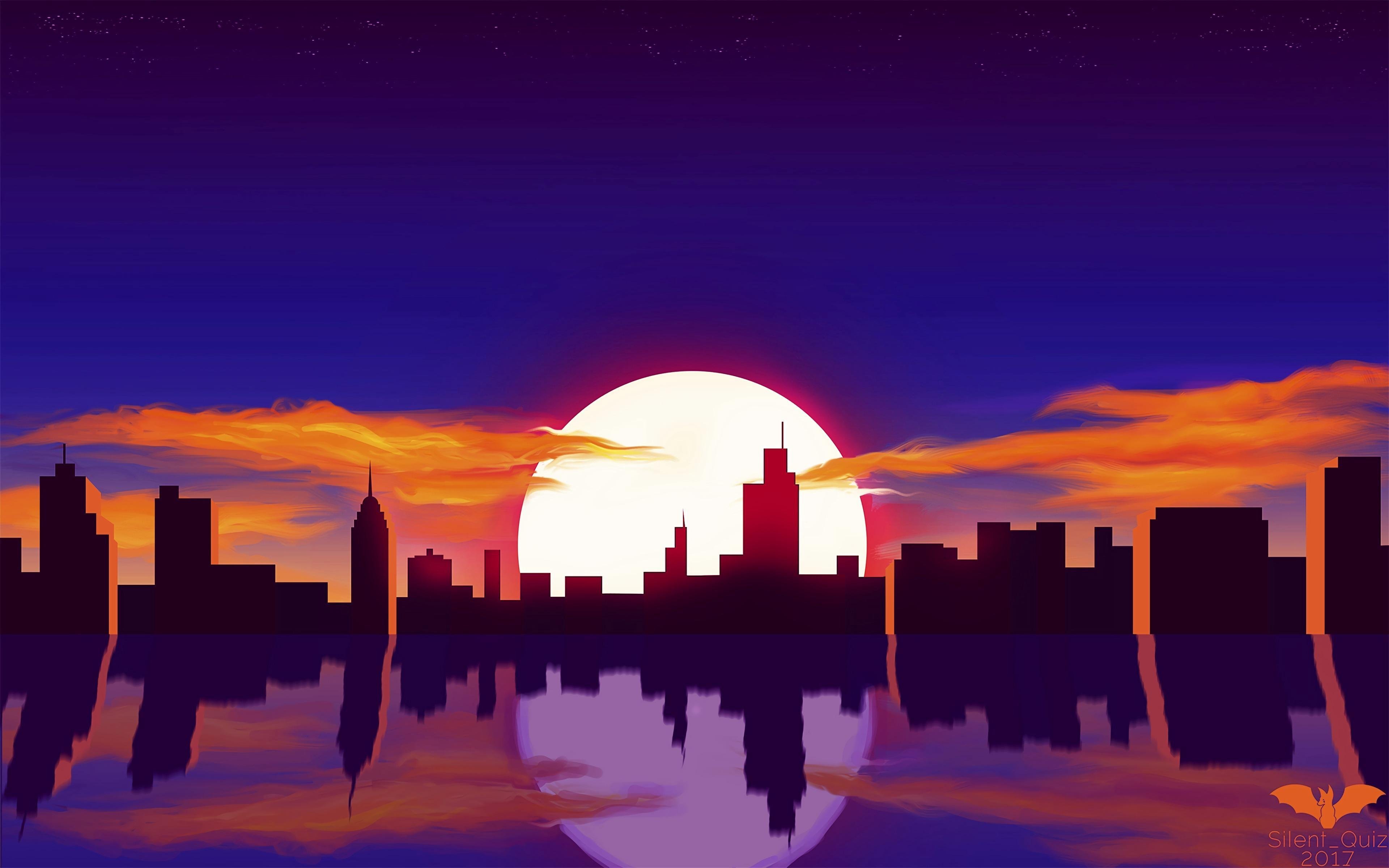 Город закат арт
