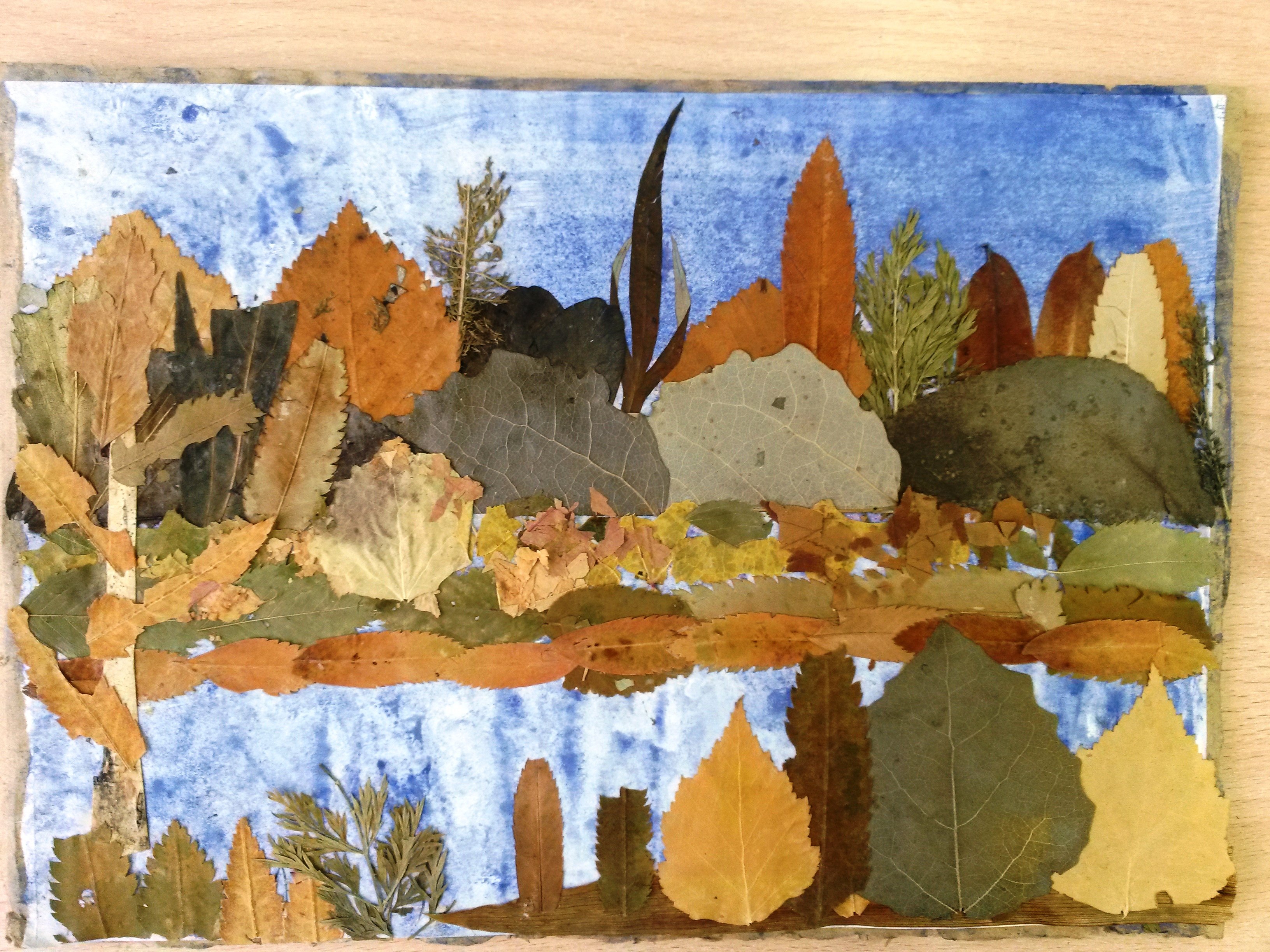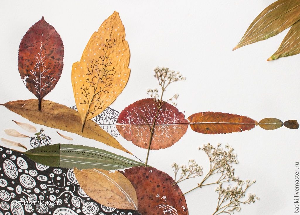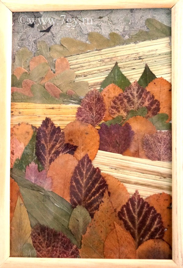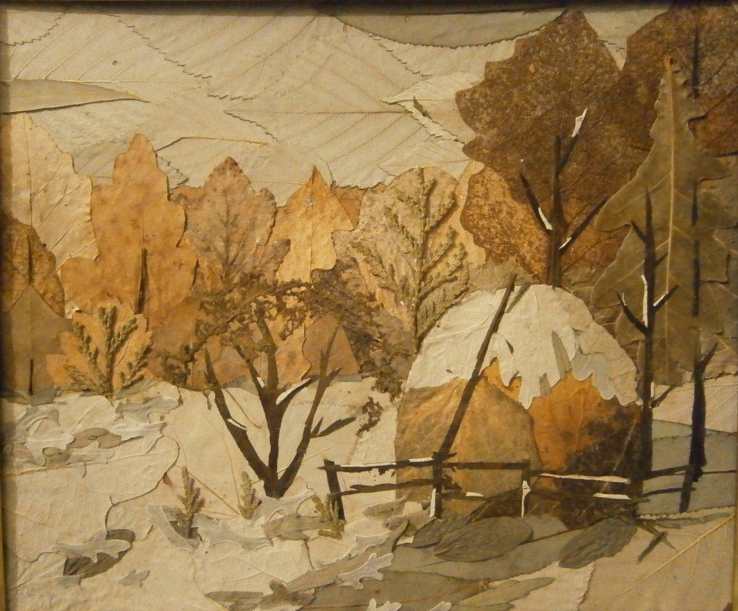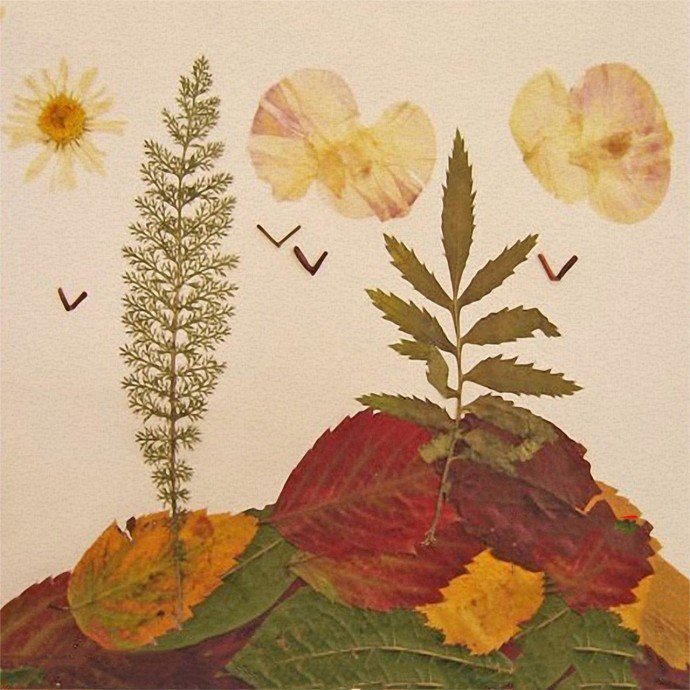 Аппликация из высушенных листьев