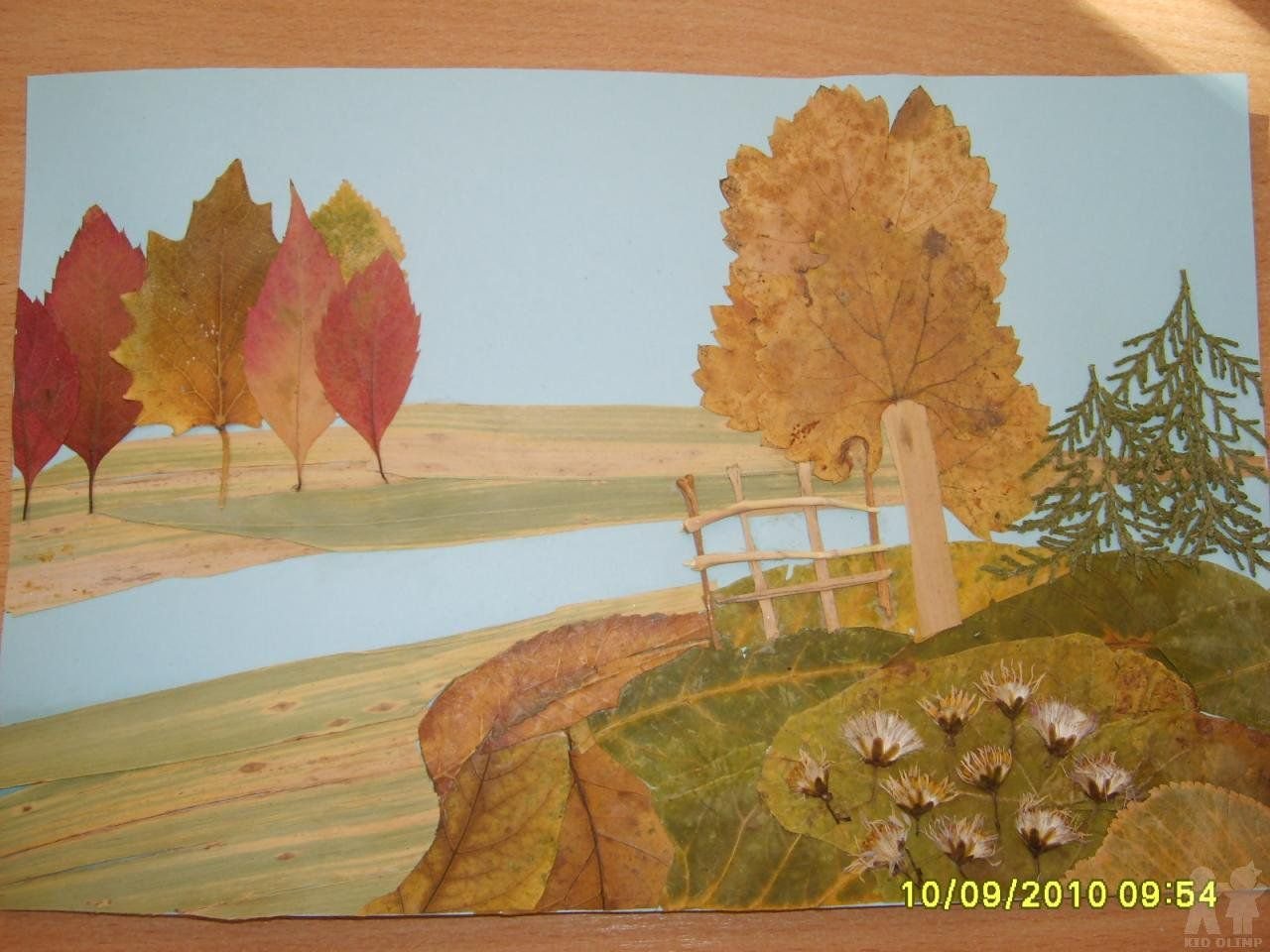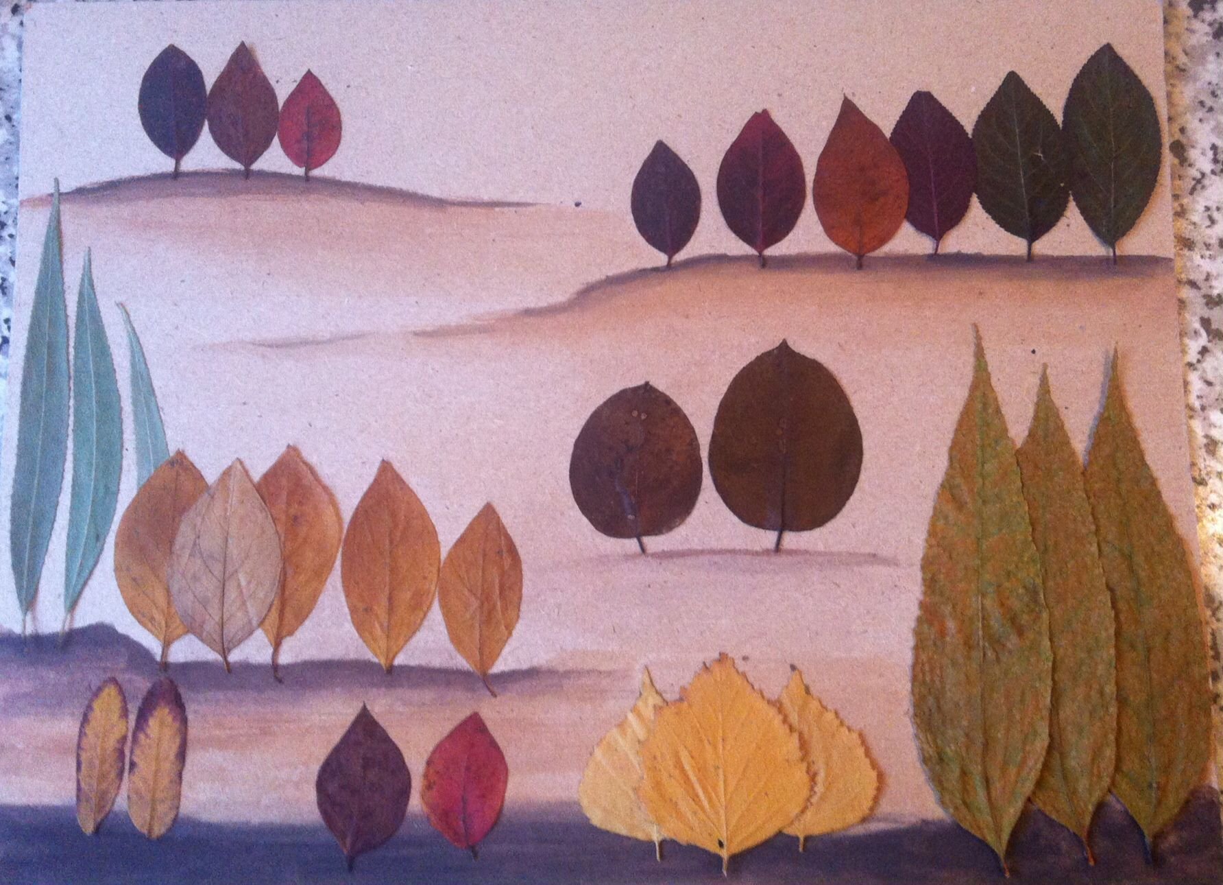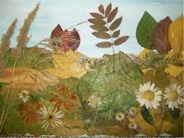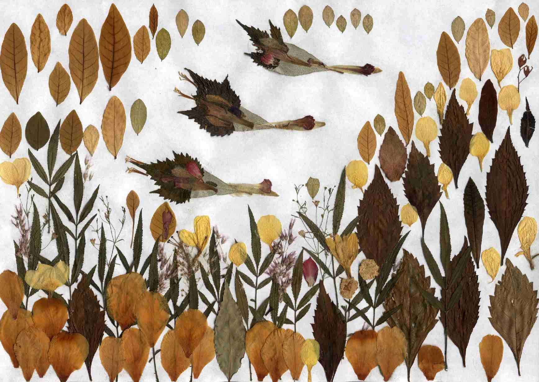 Аппликация из высушенных листьев