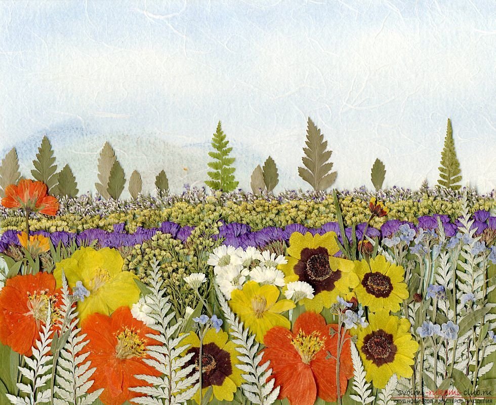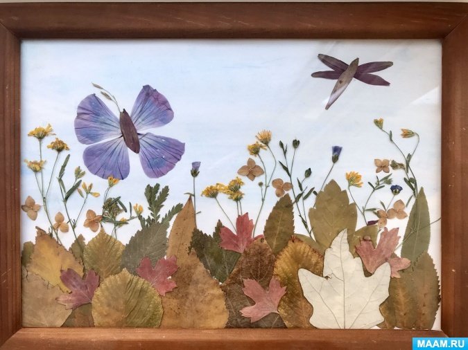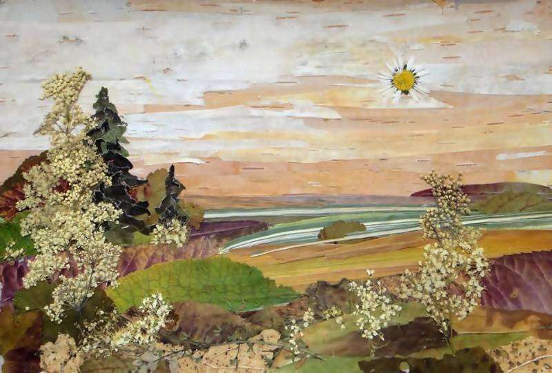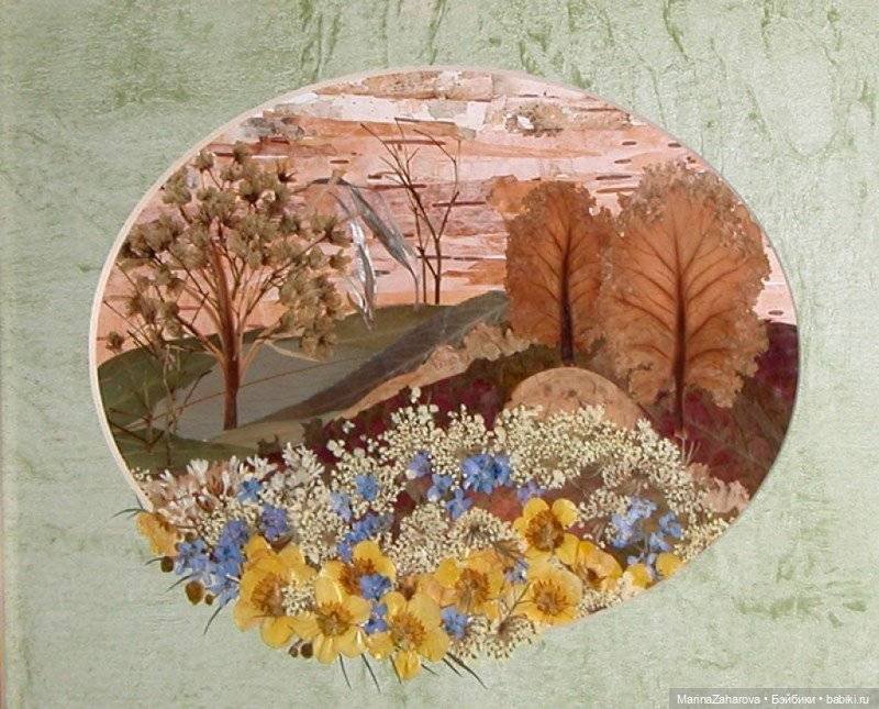 Аппликация из засушенных растений