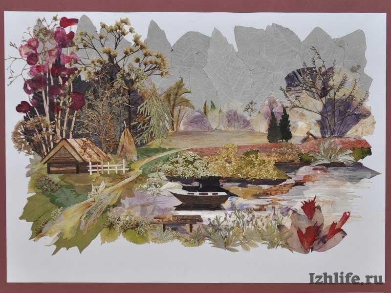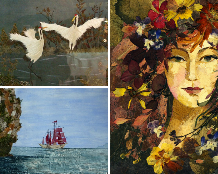 Картины пейзажи из засушенных растений в Японии