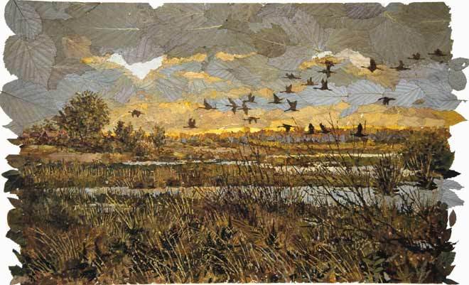 Осенний пейзаж из листьев