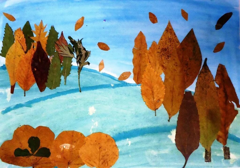 Сюжетная аппликация из листьев