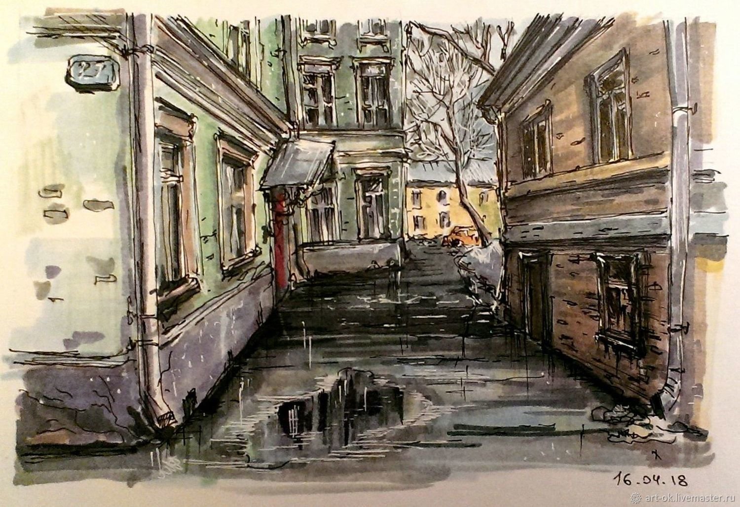 Этюд городского пейзажа акварелью
