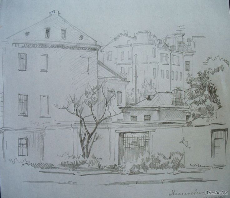 Городской пейзаж карандашом