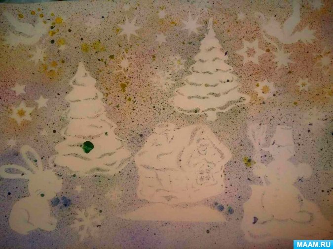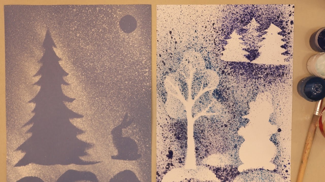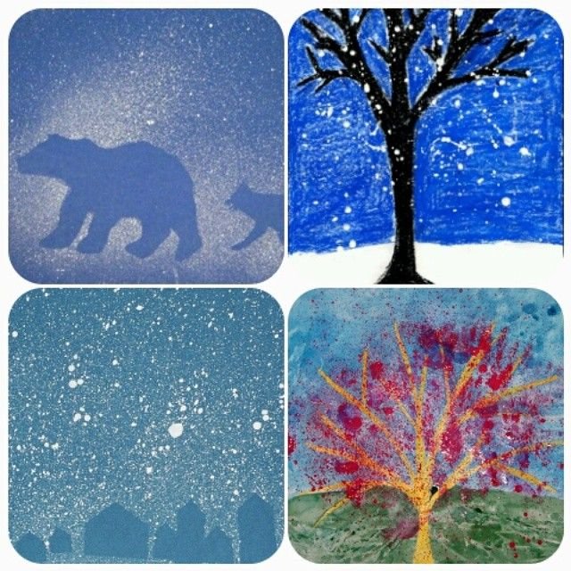 Набрызг техника рисования для детей зима