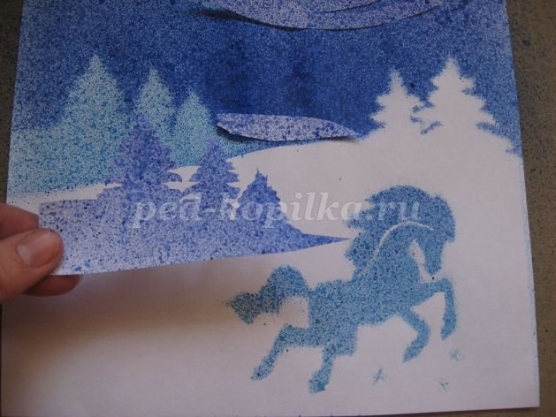 Рисование в технике набрызг зимний