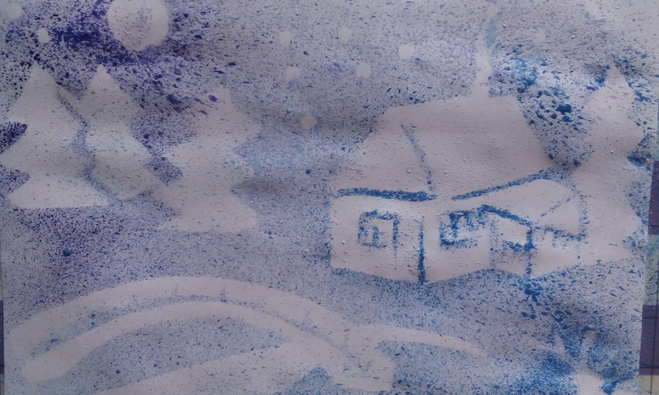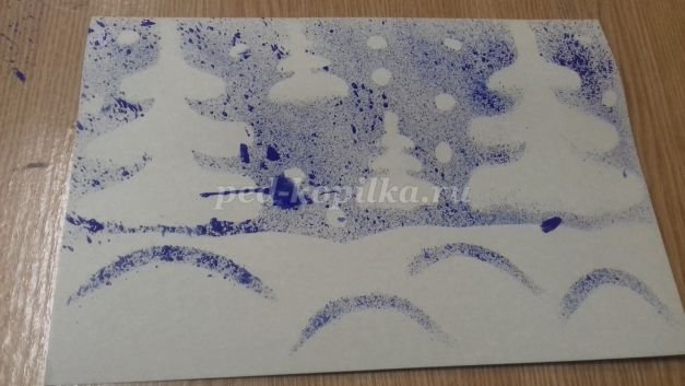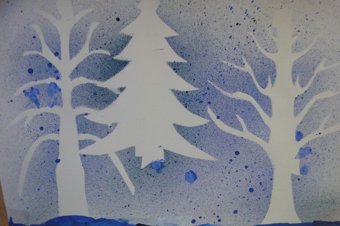 Набрызг рисование на тему зима