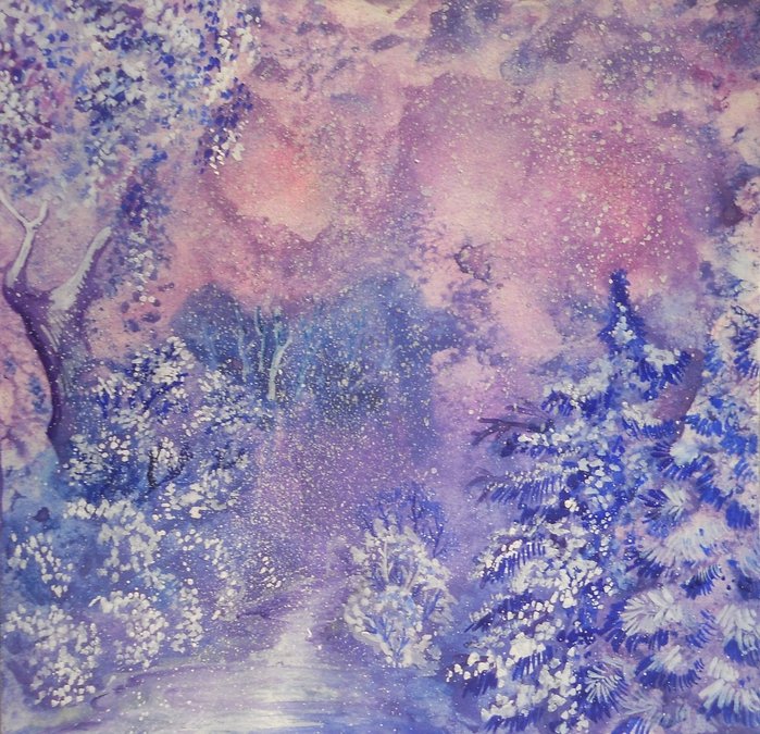 Зимний пейзаж в технике набрызг
