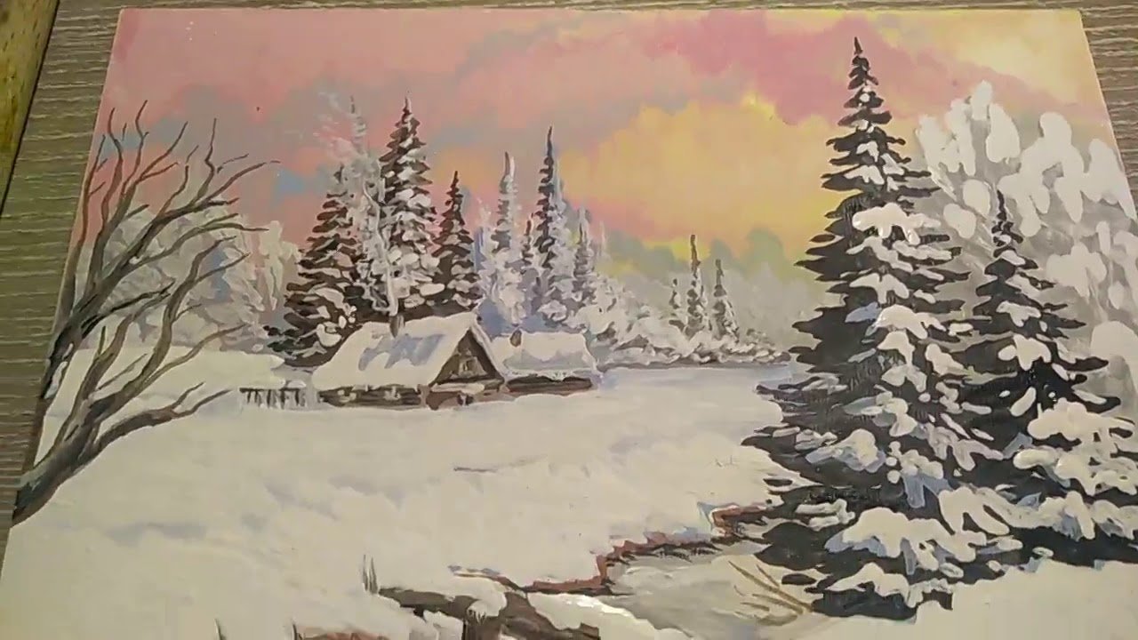 Зимний пейзаж красками