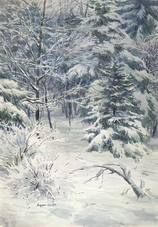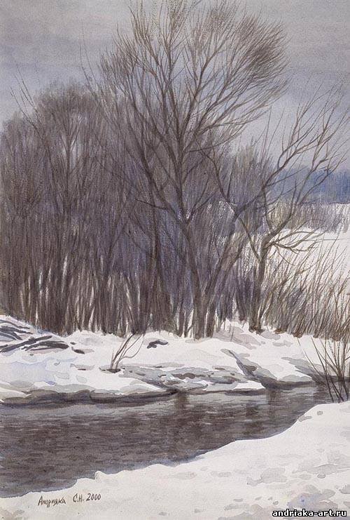 Сергей Андрияка зимние пейзажи акварелью