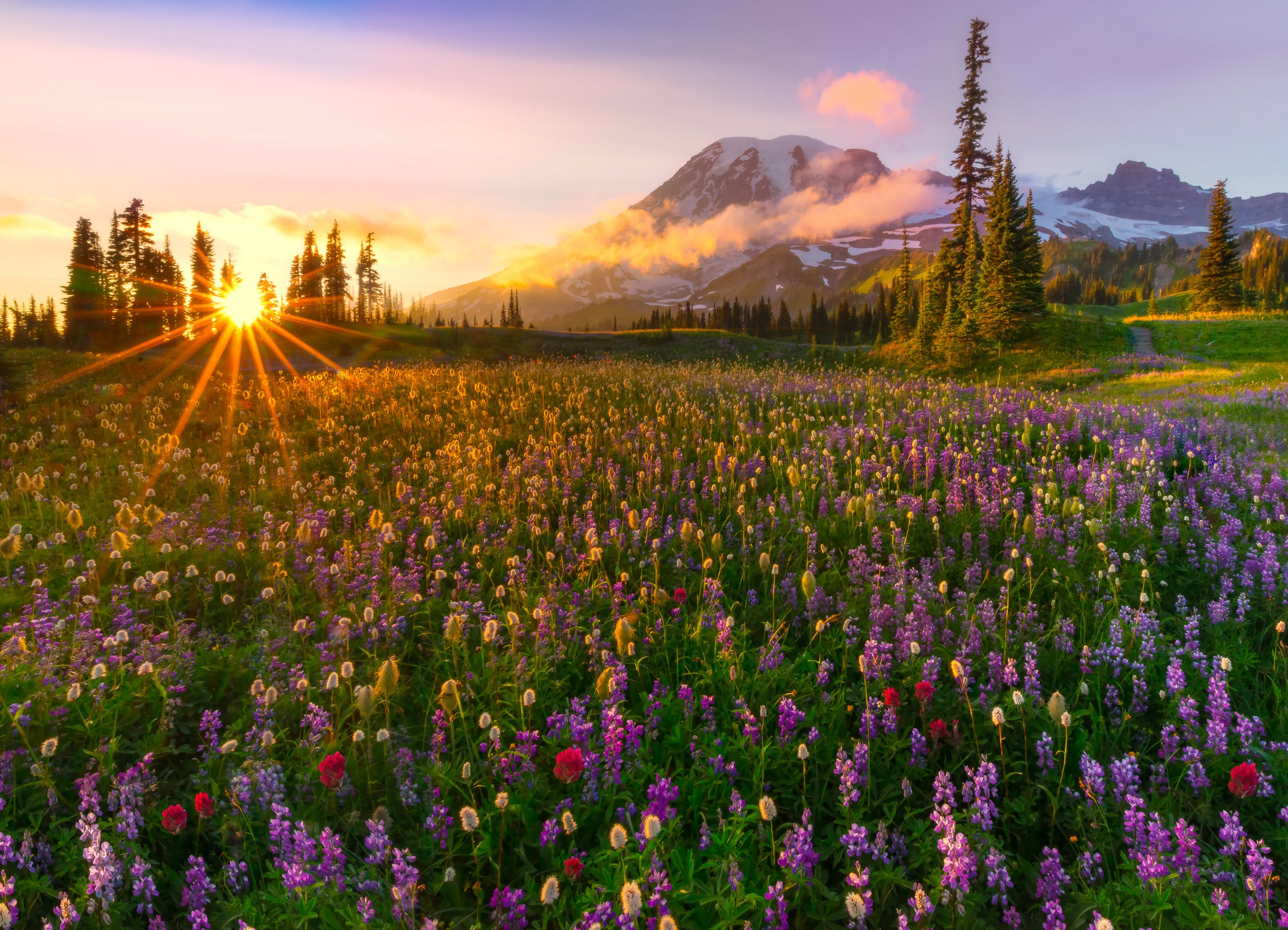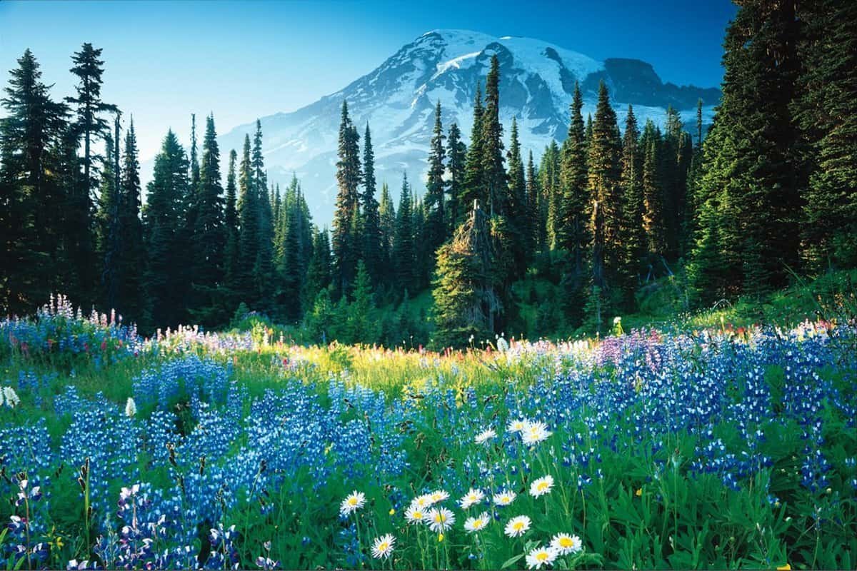 Национальный парк Олимпик Луга горы цветы Поляна